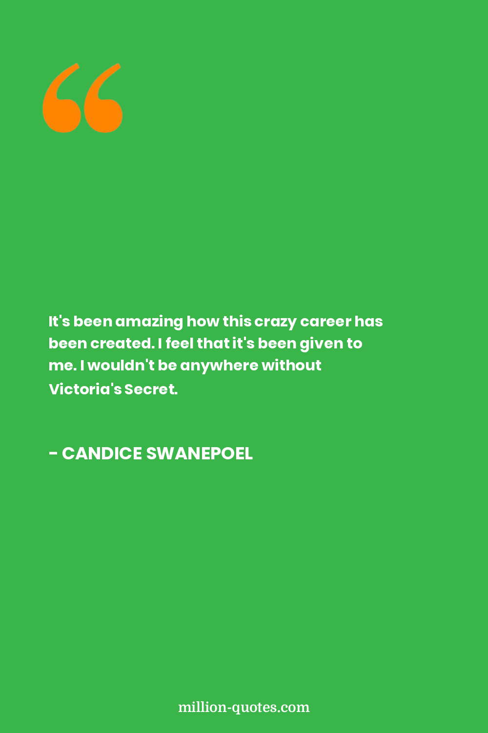 It's been amazing how this crazy career has been created. I feel that it's been given to me. I wouldn't be anywhere without Victoria's Secret.