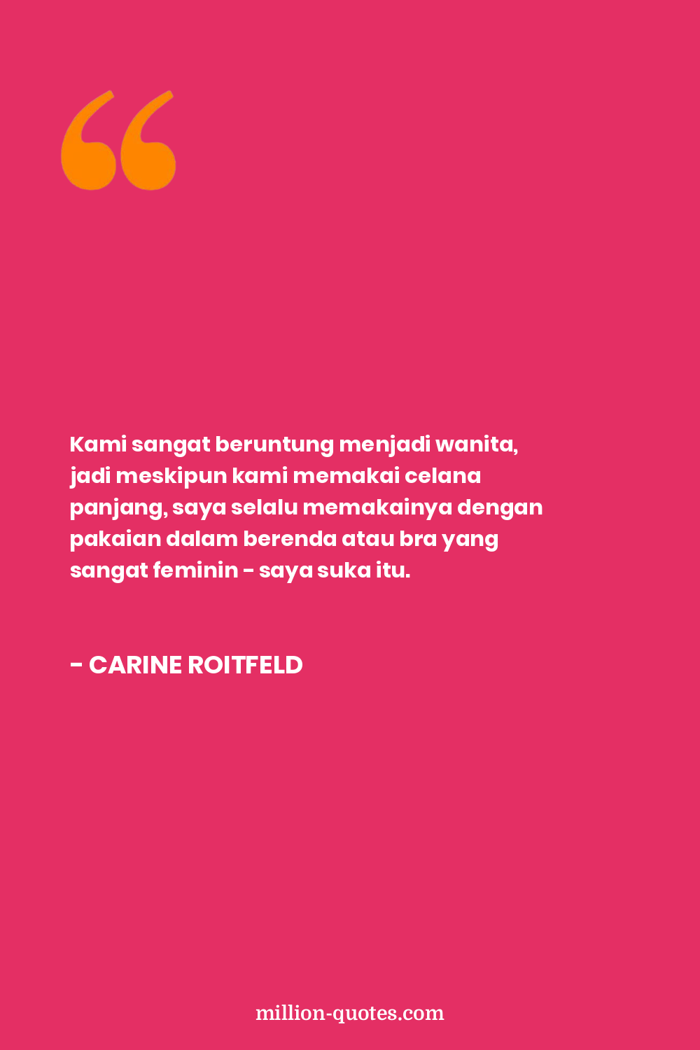 Kami sangat beruntung menjadi wanita, jadi meskipun kami memakai celana panjang, saya selalu memakainya dengan pakaian dalam berenda atau bra yang sangat feminin - saya suka itu.