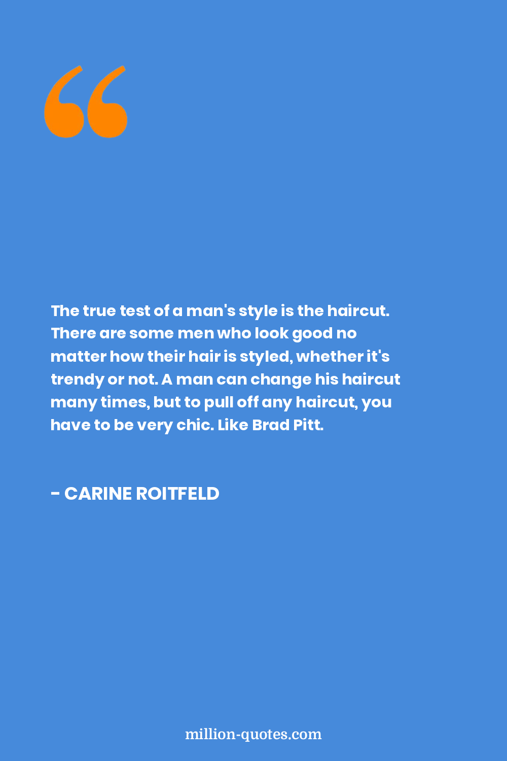 The true test of a man's style is the haircut. There are some men who look good no matter how their hair is styled, whether it's trendy or not. A man can change his haircut many times, but to pull off any haircut, you have to be very chic. Like Brad Pitt.