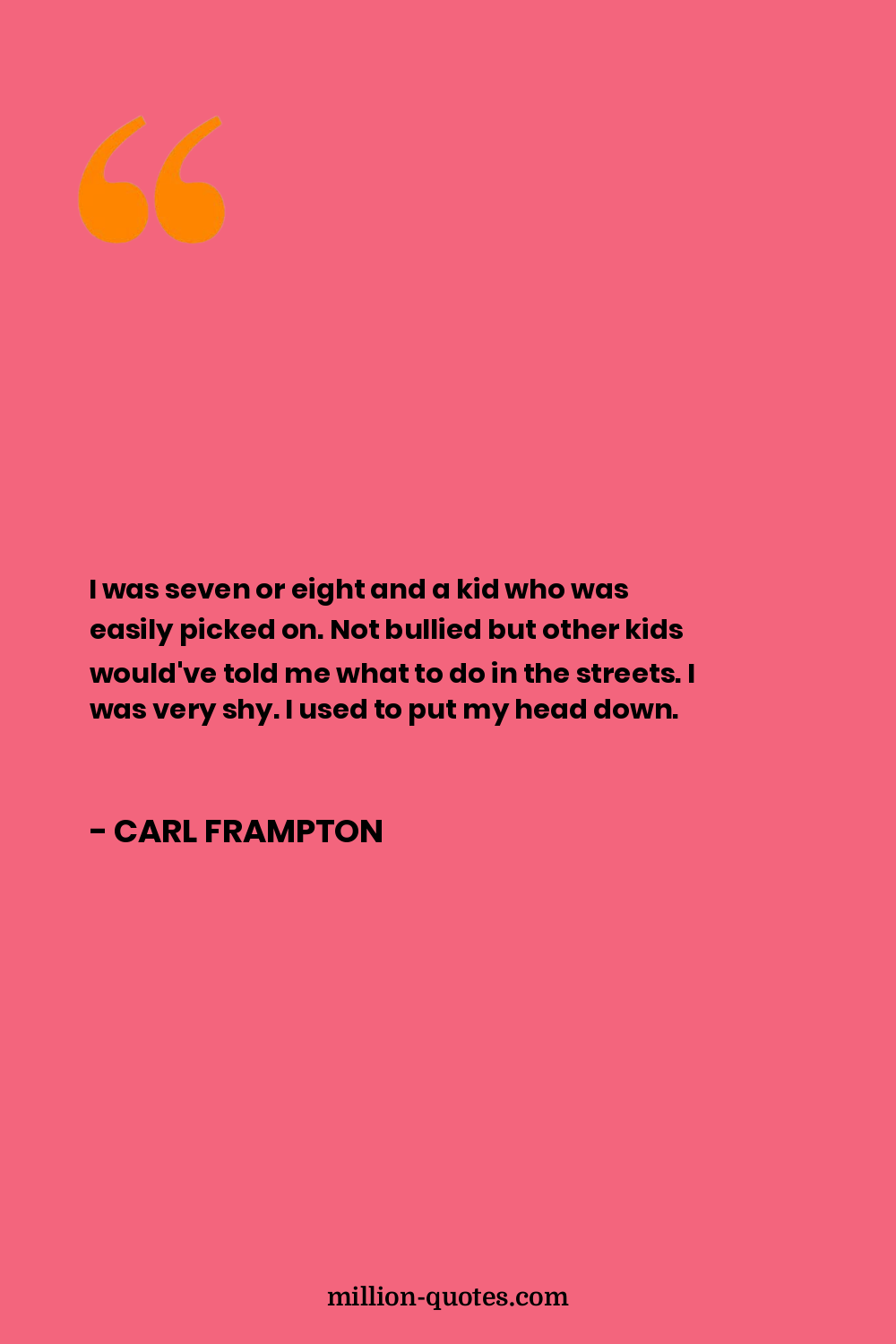 I was seven or eight and a kid who was easily picked on. Not bullied but other kids would've told me what to do in the streets. I was very shy. I used to put my head down.