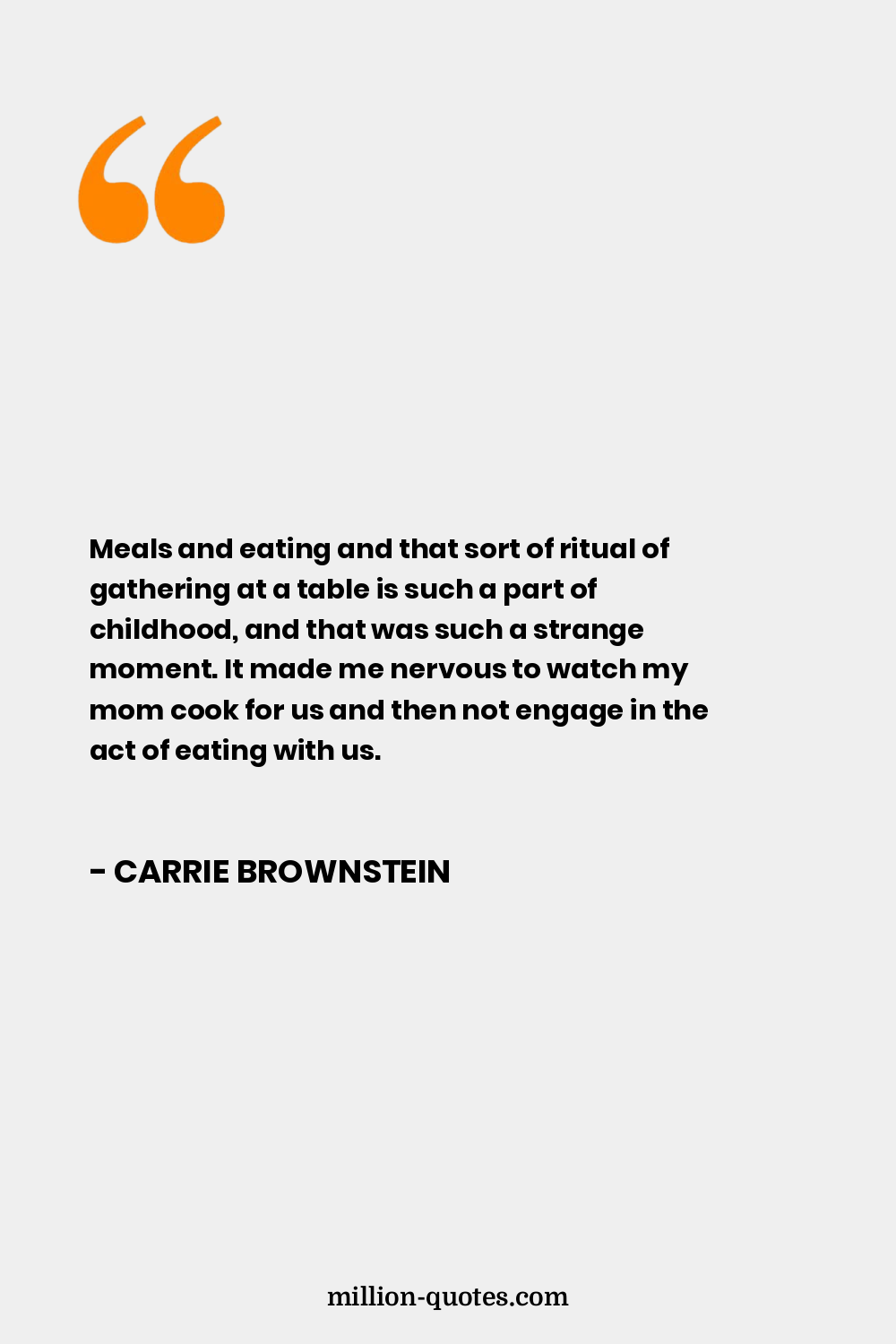 Meals and eating and that sort of ritual of gathering at a table is such a part of childhood, and that was such a strange moment. It made me nervous to watch my mom cook for us and then not engage in the act of eating with us.