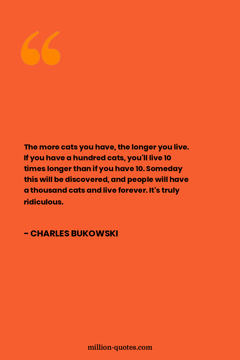 The more cats you have, the longer you live. If you have a hundred cats, you'll live 10 times longer than if you have 10. Someday this will be discovered, and people will have a thousand cats and live forever. It's truly ridiculous.