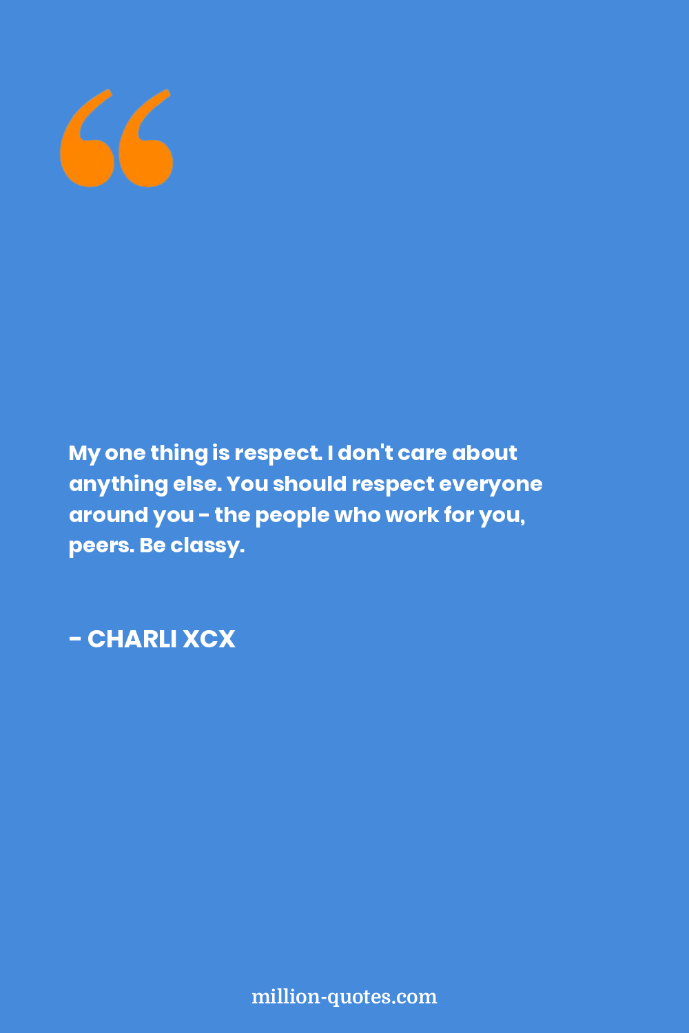 My one thing is respect. I don't care about anything else. You should respect everyone around you - the people who work for you, peers. Be classy.