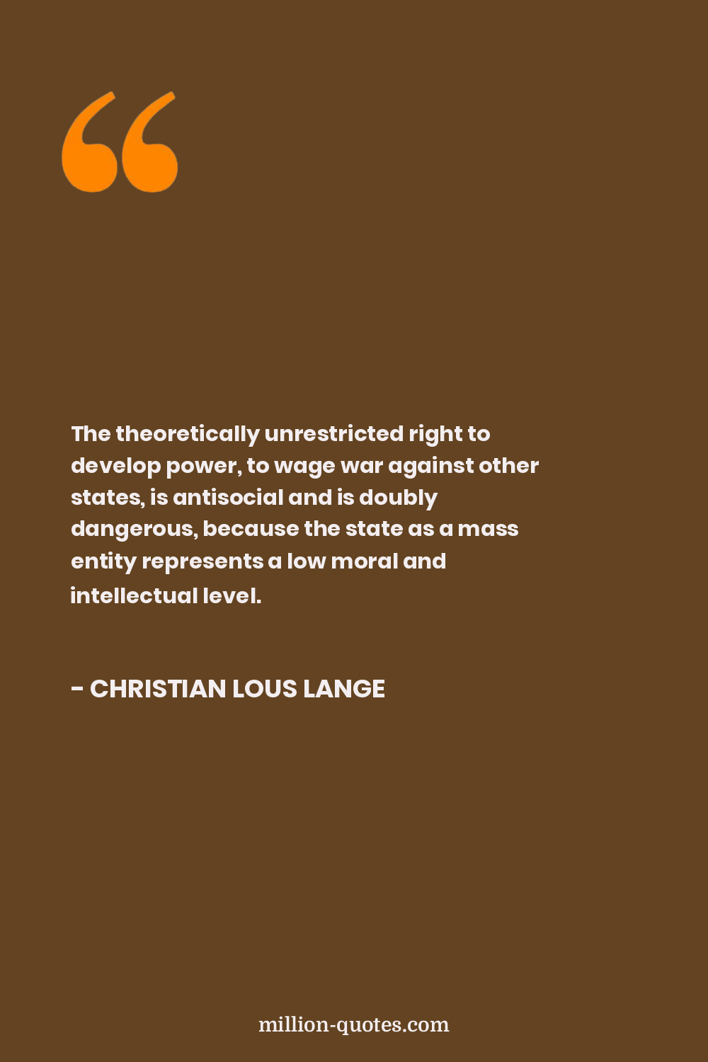 The theoretically unrestricted right to develop power, to wage war against other states, is antisocial and is doubly dangerous, because the state as a mass entity represents a low moral and intellectual level.