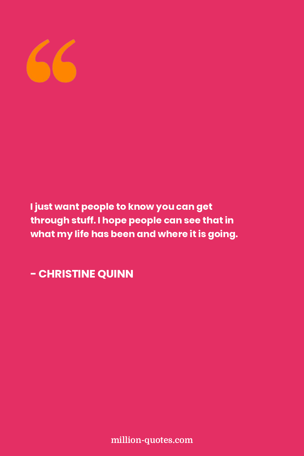 I just want people to know you can get through stuff. I hope people can see that in what my life has been and where it is going.