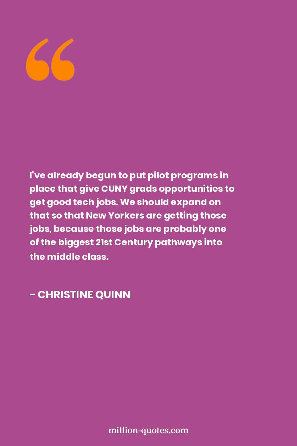 I've already begun to put pilot programs in place that give CUNY grads opportunities to get good tech jobs. We should expand on that so that New Yorkers are getting those jobs, because those jobs are probably one of the biggest 21st Century pathways into the middle class.