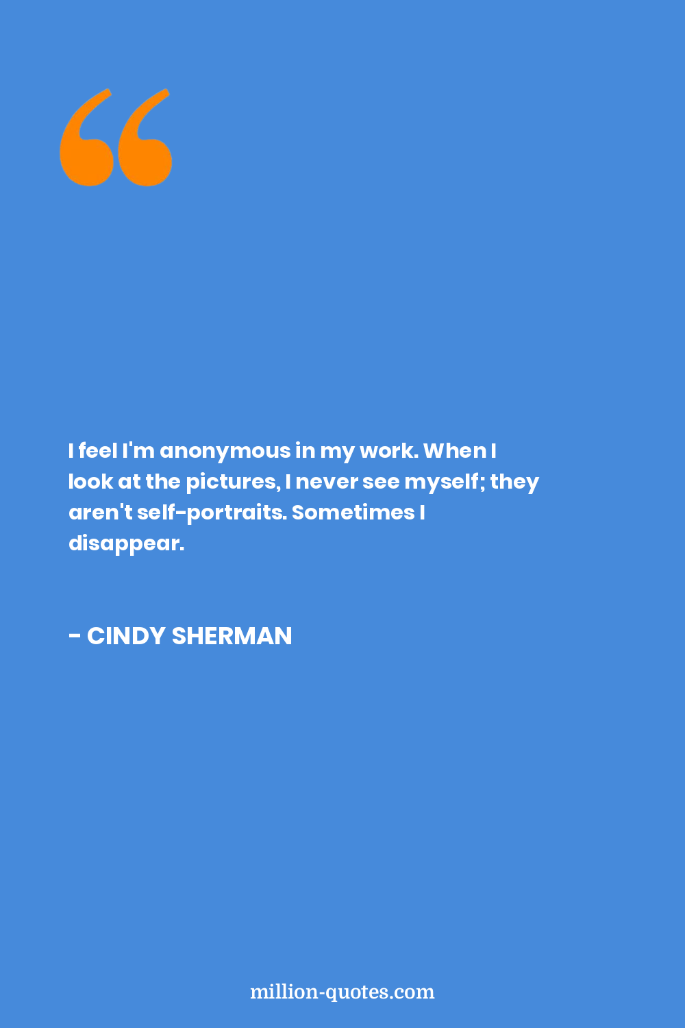 I feel I'm anonymous in my work. When I look at the pictures, I never see myself; they aren't self-portraits. Sometimes I disappear.