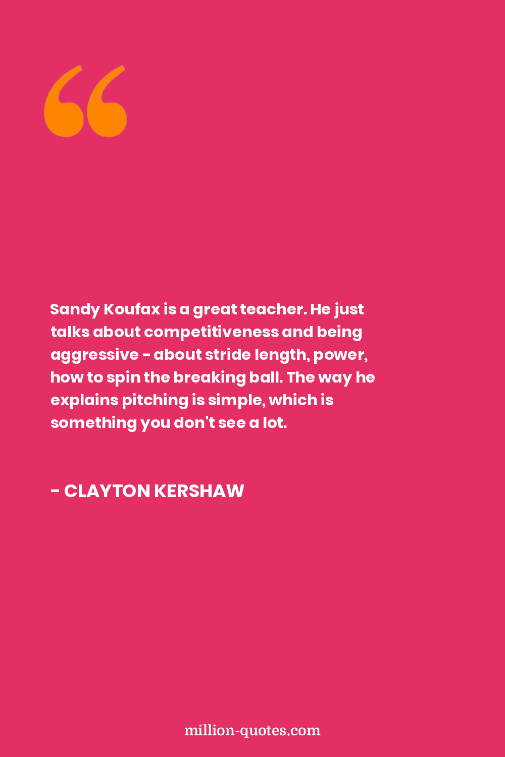Sandy Koufax is a great teacher. He just talks about competitiveness and being aggressive - about stride length, power, how to spin the breaking ball. The way he explains pitching is simple, which is something you don't see a lot.