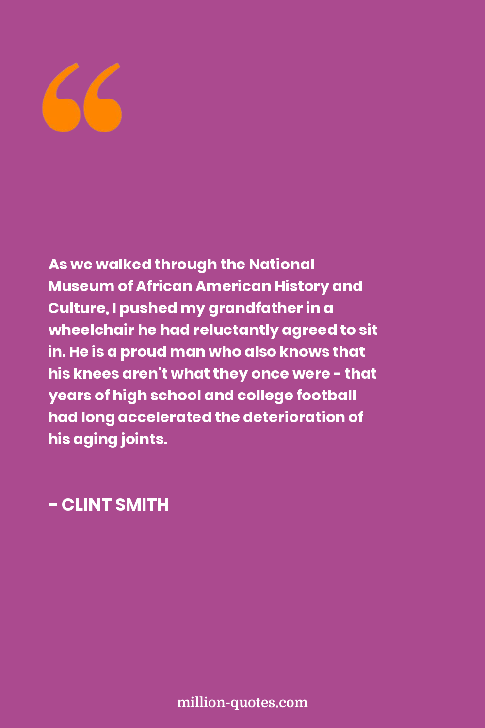 As we walked through the National Museum of African American History and Culture, I pushed my grandfather in a wheelchair he had reluctantly agreed to sit in. He is a proud man who also knows that his knees aren't what they once were - that years of high school and college football had long accelerated the deterioration of his aging joints.