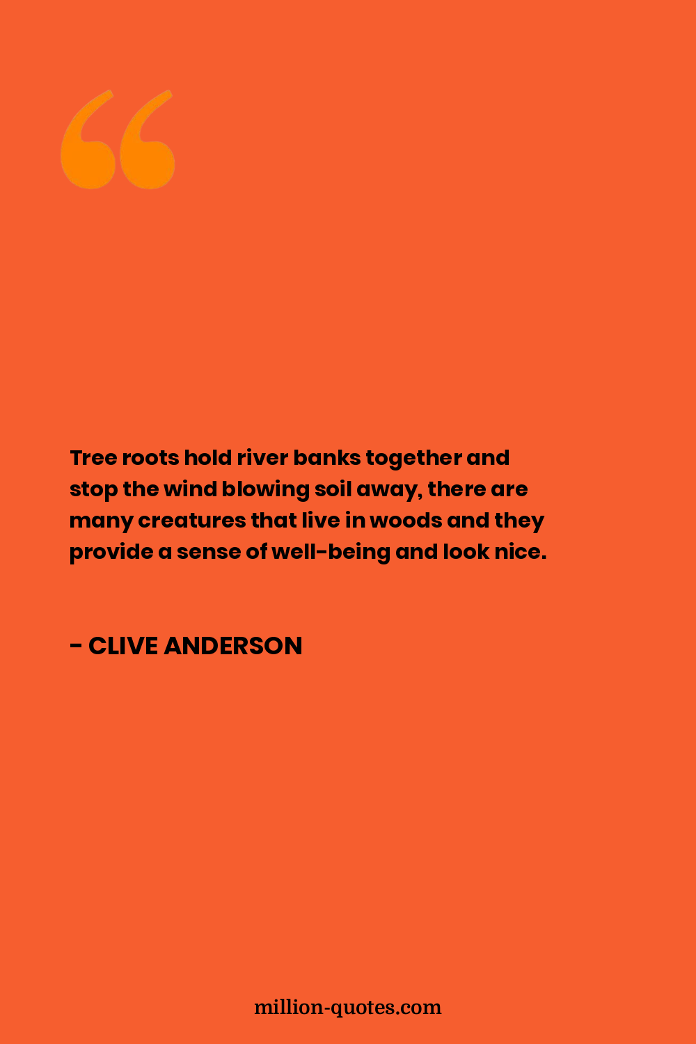 Tree roots hold river banks together and stop the wind blowing soil away, there are many creatures that live in woods and they provide a sense of well-being and look nice.