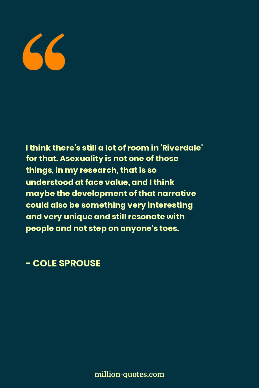 I think there's still a lot of room in 'Riverdale' for that. Asexuality is not one of those things, in my research, that is so understood at face value, and I think maybe the development of that narrative could also be something very interesting and very unique and still resonate with people and not step on anyone's toes.