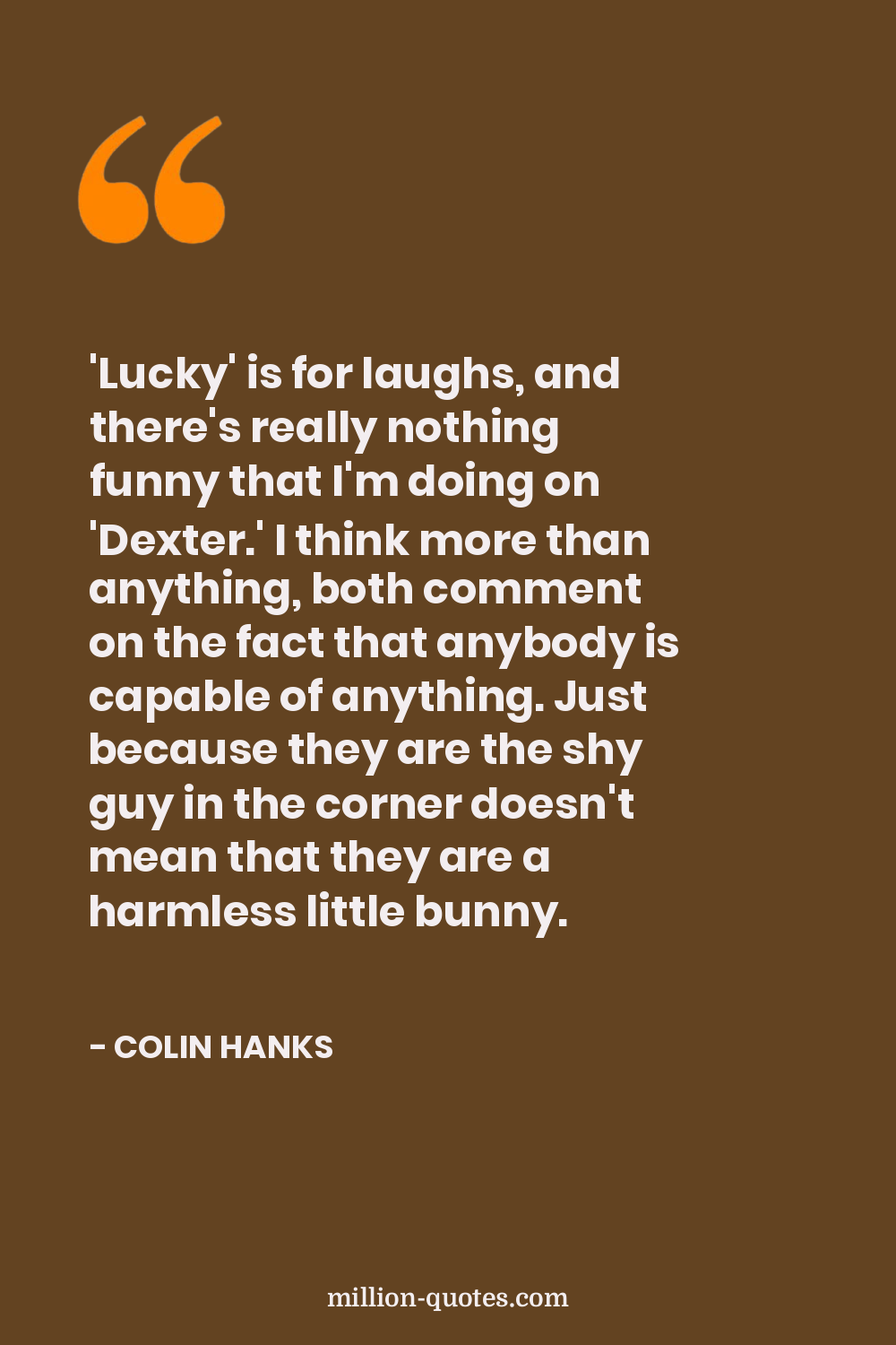 'Lucky' is for laughs, and there's really nothing funny that I'm doing on 'Dexter.' I think more than anything, both comment on the fact that anybody is capable of anything. Just because they are the shy guy in the corner doesn't mean that they are a harmless little bunny.