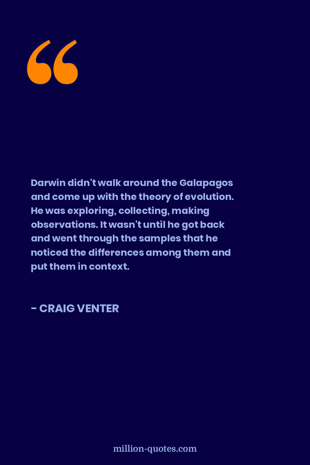Darwin didn't walk around the Galapagos and come up with the theory of evolution. He was exploring, collecting, making observations. It wasn't until he got back and went through the samples that he noticed the differences among them and put them in context.
