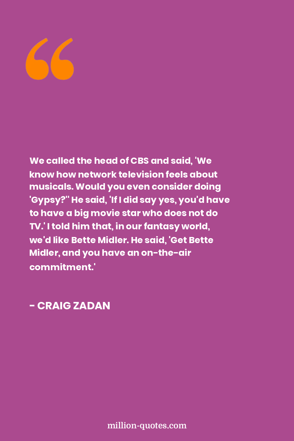 We called the head of CBS and said, 'We know how network television feels about musicals. Would you even consider doing 'Gypsy?'' He said, 'If I did say yes, you'd have to have a big movie star who does not do TV.' I told him that, in our fantasy world, we'd like Bette Midler. He said, 'Get Bette Midler, and you have an on-the-air commitment.'