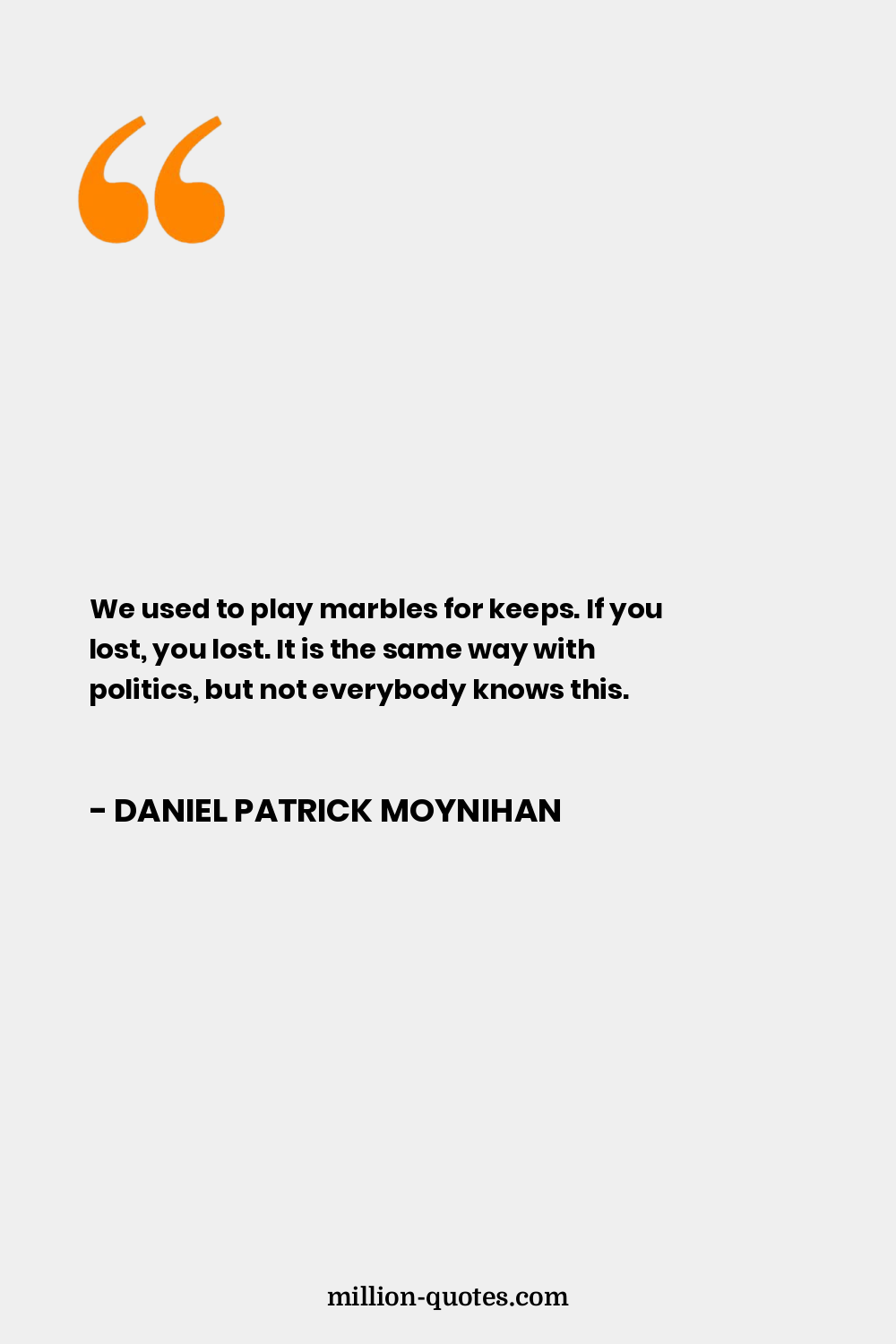 We used to play marbles for keeps. If you lost, you lost. It is the same way with politics, but not everybody knows this.