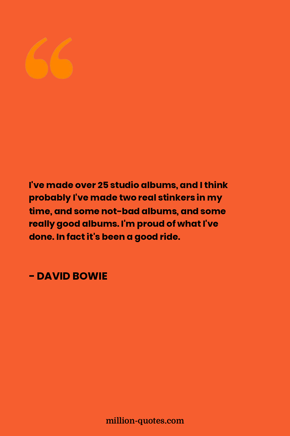 I've made over 25 studio albums, and I think probably I've made two real stinkers in my time, and some not-bad albums, and some really good albums. I'm proud of what I've done. In fact it's been a good ride.