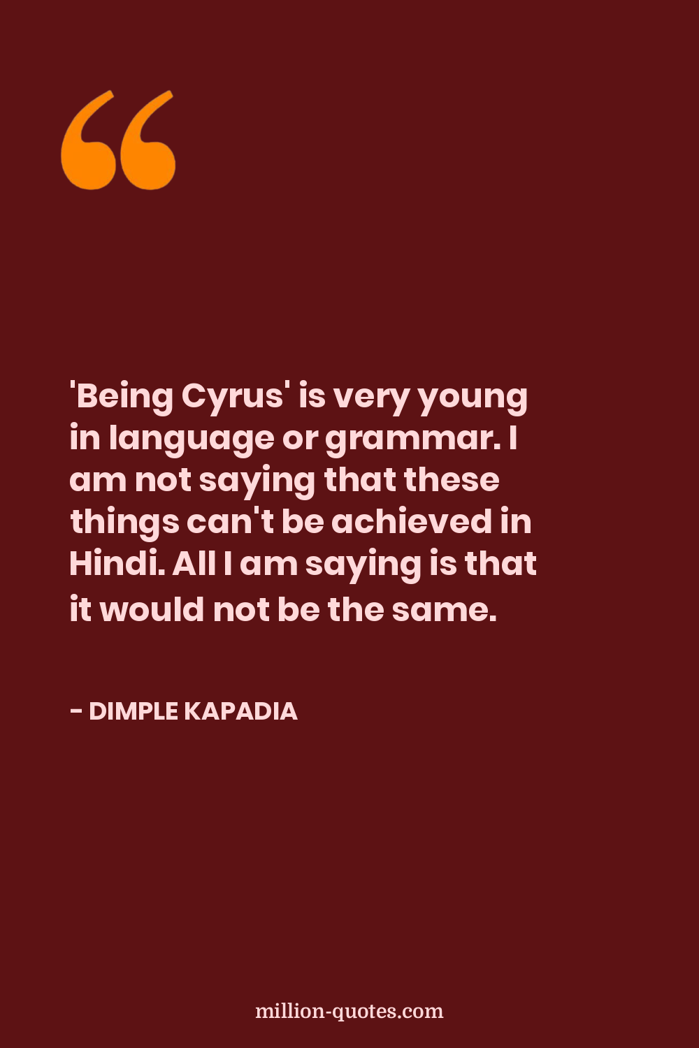 'Being Cyrus' is very young in language or grammar. I am not saying that these things can't be achieved in Hindi. All I am saying is that it would not be the same.