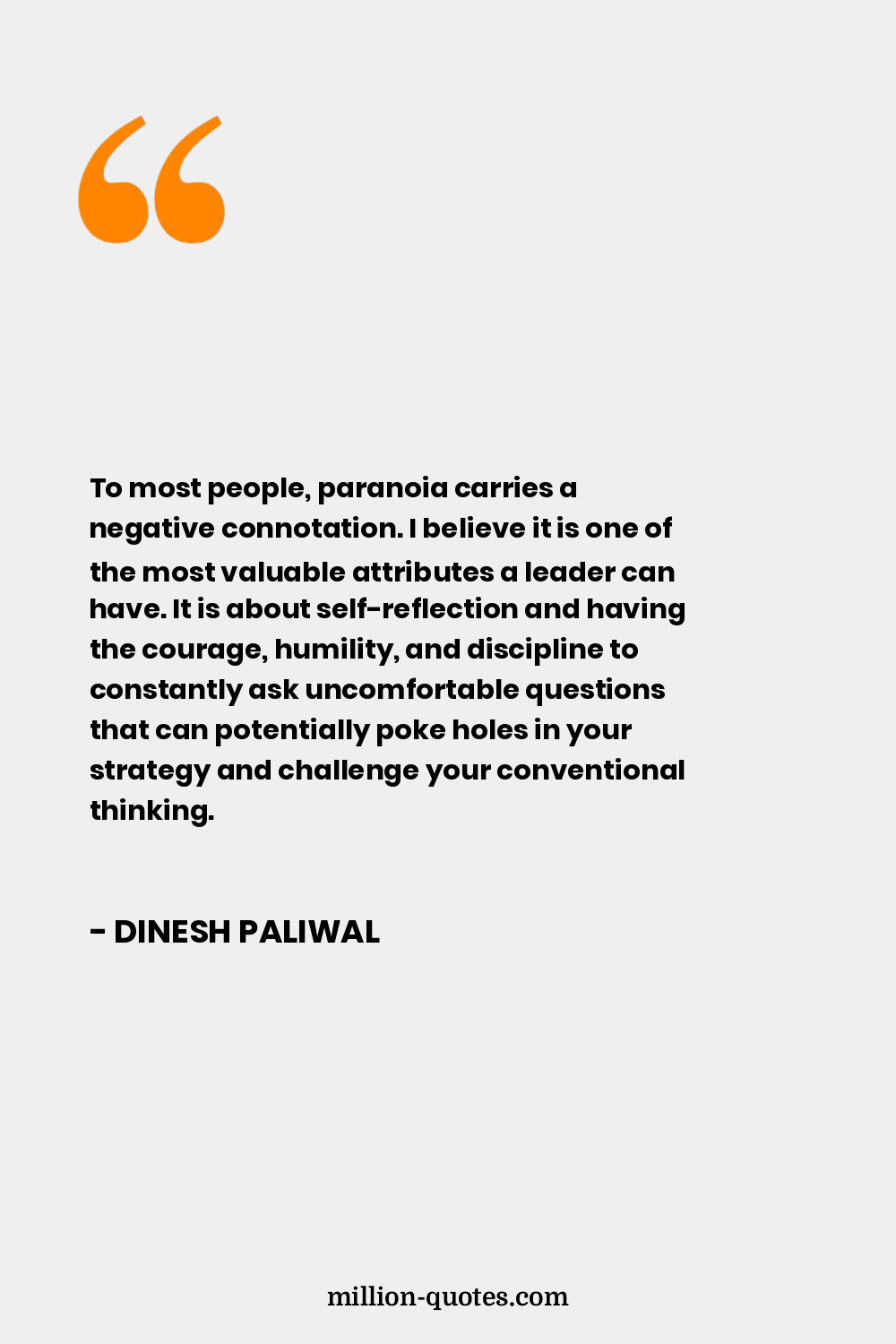 To most people, paranoia carries a negative connotation. I believe it is one of the most valuable attributes a leader can have. It is about self-reflection and having the courage, humility, and discipline to constantly ask uncomfortable questions that can potentially poke holes in your strategy and challenge your conventional thinking.