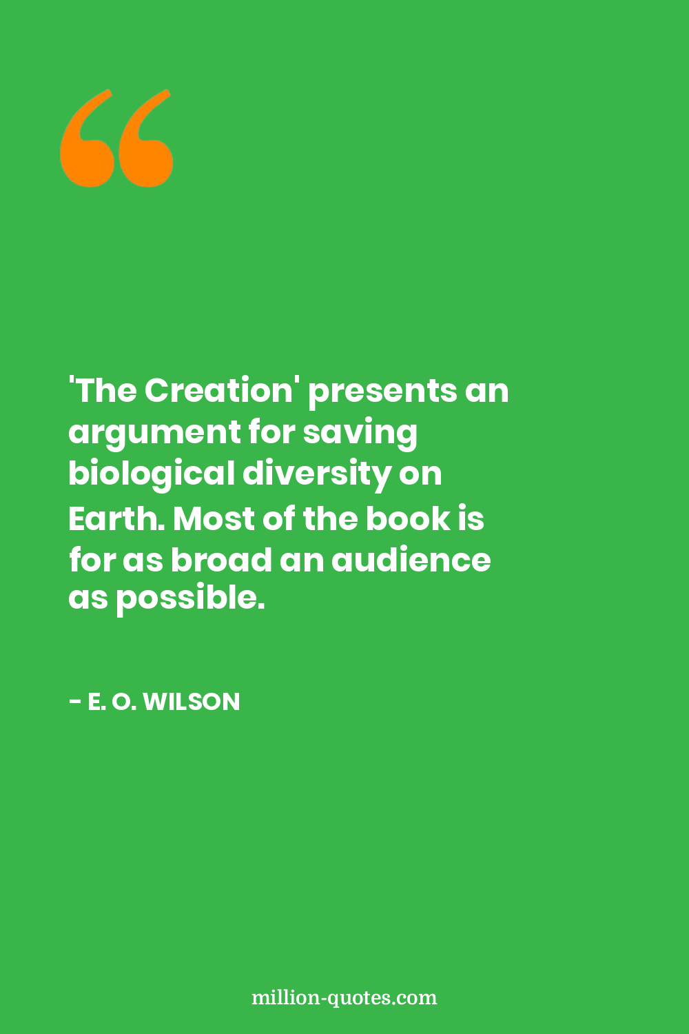 'The Creation' presents an argument for saving biological diversity on Earth. Most of the book is for as broad an audience as possible.