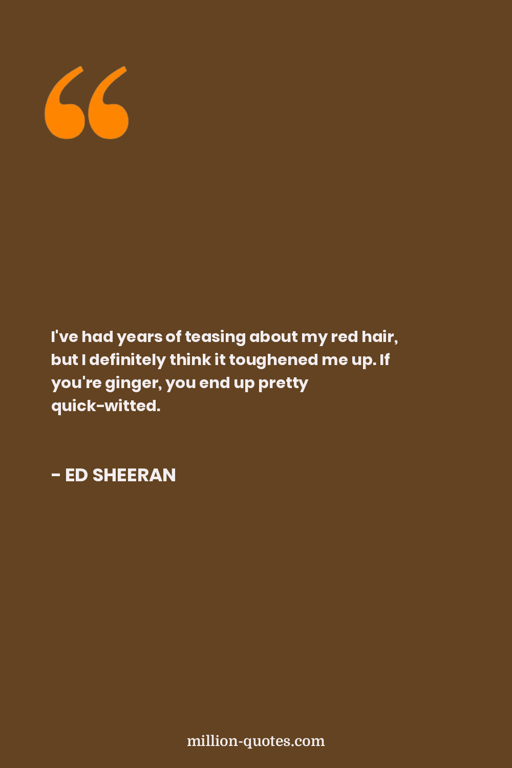I've had years of teasing about my red hair, but I definitely think it toughened me up. If you're ginger, you end up pretty quick-witted.