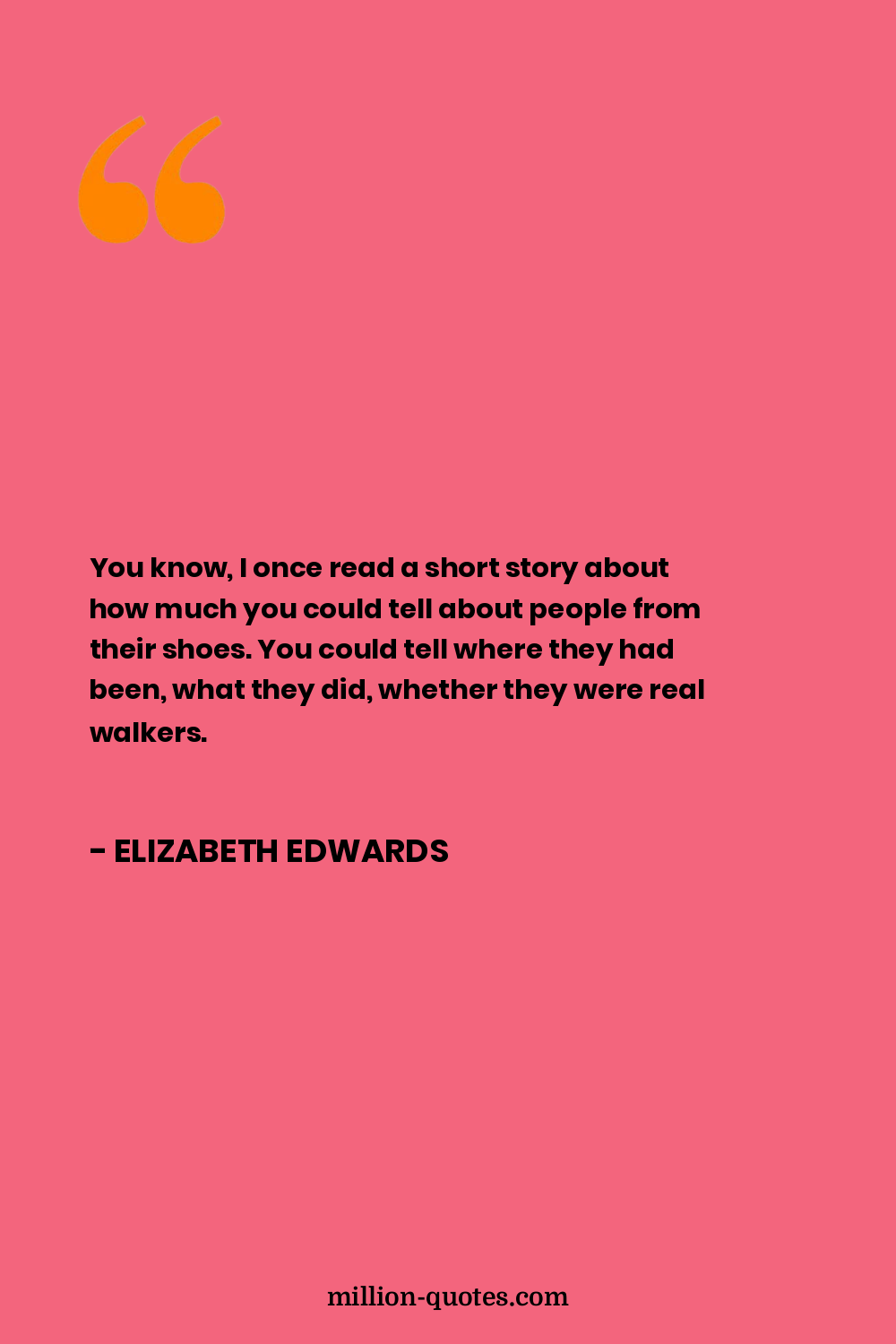You know, I once read a short story about how much you could tell about people from their shoes. You could tell where they had been, what they did, whether they were real walkers.