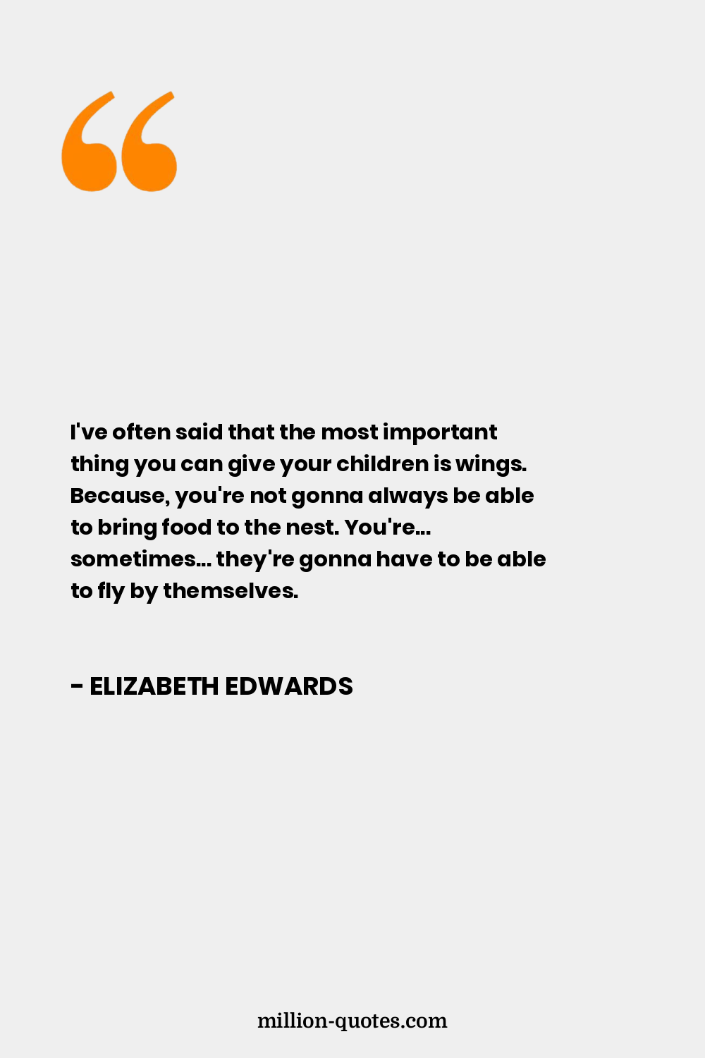 I've often said that the most important thing you can give your children is wings. Because, you're not gonna always be able to bring food to the nest. You're... sometimes... they're gonna have to be able to fly by themselves.
