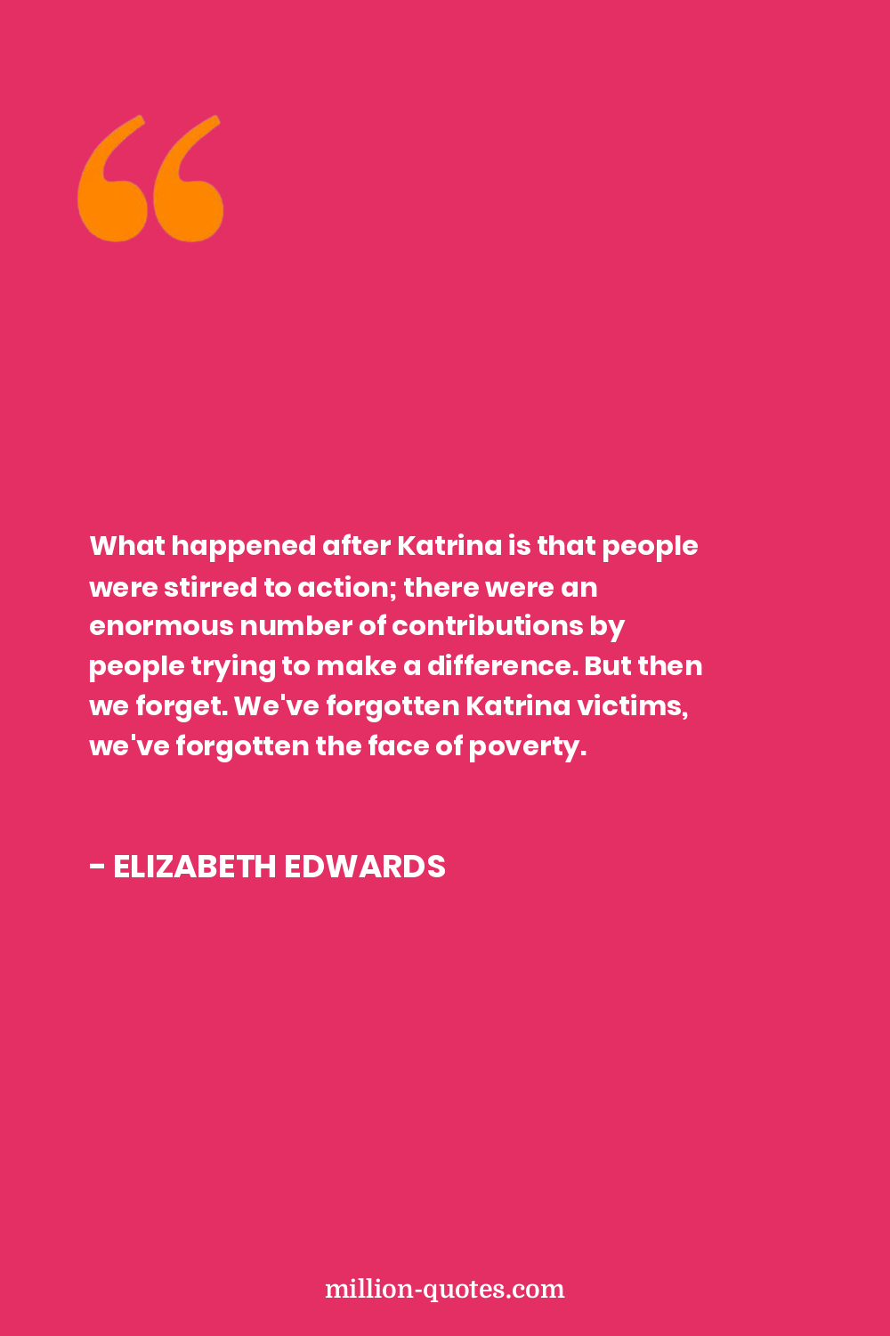 What happened after Katrina is that people were stirred to action; there were an enormous number of contributions by people trying to make a difference. But then we forget. We've forgotten Katrina victims, we've forgotten the face of poverty.