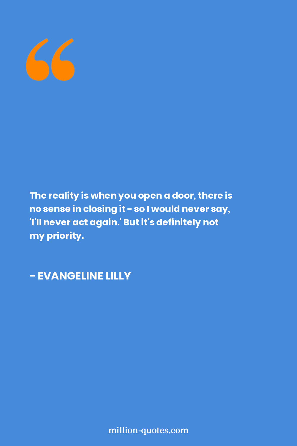 The reality is when you open a door, there is no sense in closing it - so I would never say, 'I'll never act again.' But it's definitely not my priority.
