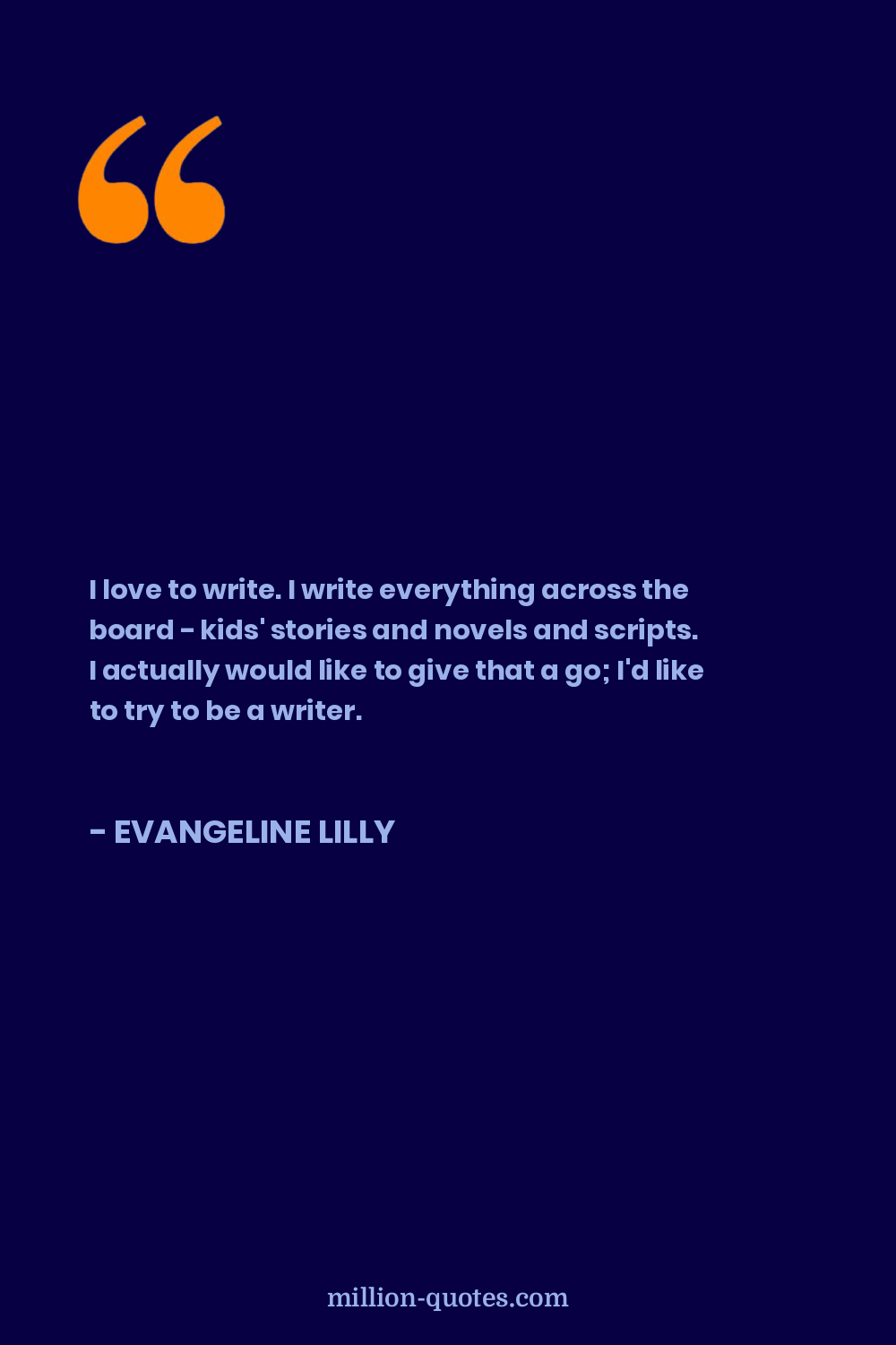I love to write. I write everything across the board - kids' stories and novels and scripts. I actually would like to give that a go; I'd like to try to be a writer.