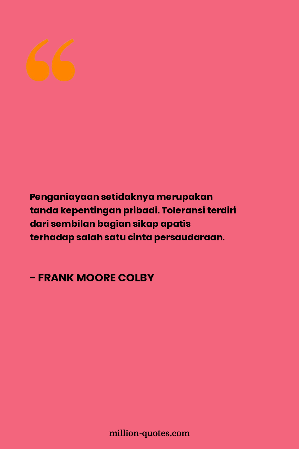 Penganiayaan setidaknya merupakan tanda kepentingan pribadi. Toleransi terdiri dari sembilan bagian sikap apatis terhadap salah satu cinta persaudaraan.