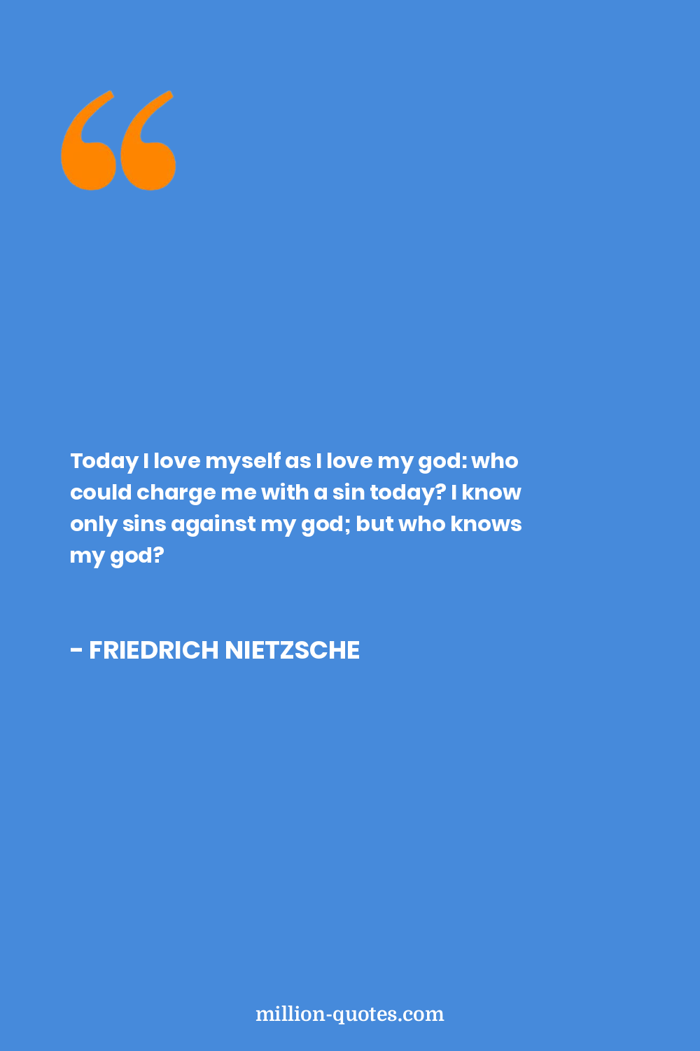 Today I love myself as I love my god: who could charge me with a sin today? I know only sins against my god; but who knows my god?