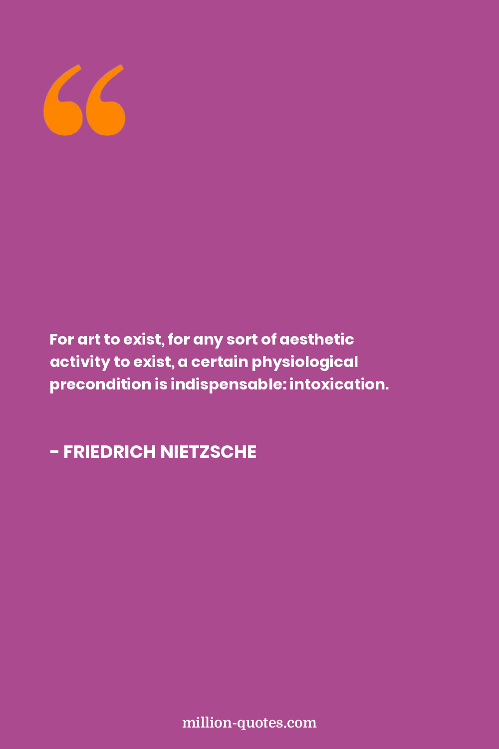 For art to exist, for any sort of aesthetic activity to exist, a certain physiological precondition is indispensable: intoxication.