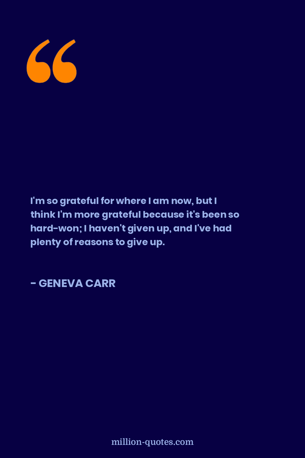 I'm so grateful for where I am now, but I think I'm more grateful because it's been so hard-won; I haven't given up, and I've had plenty of reasons to give up.