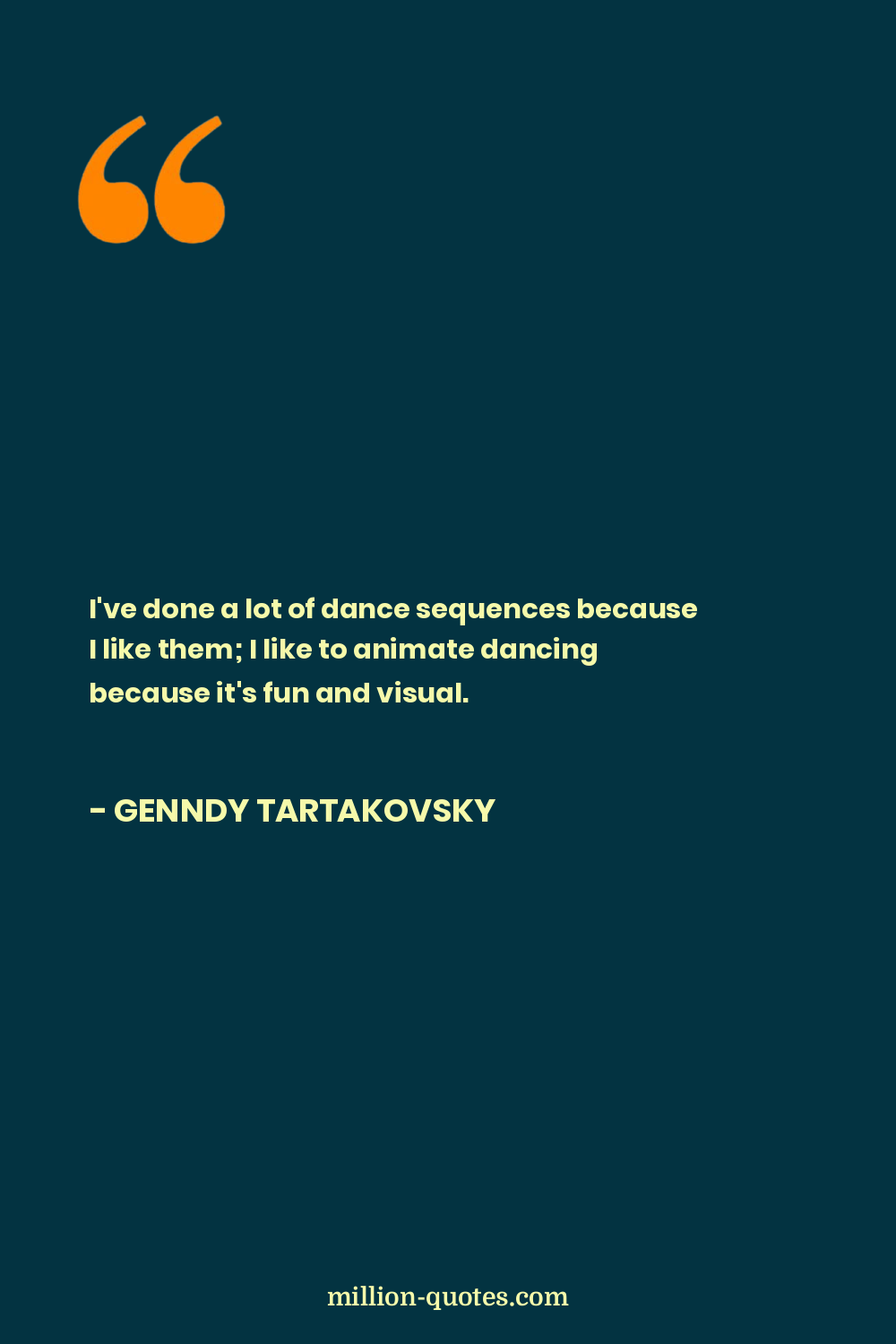 I've done a lot of dance sequences because I like them; I like to animate dancing because it's fun and visual.