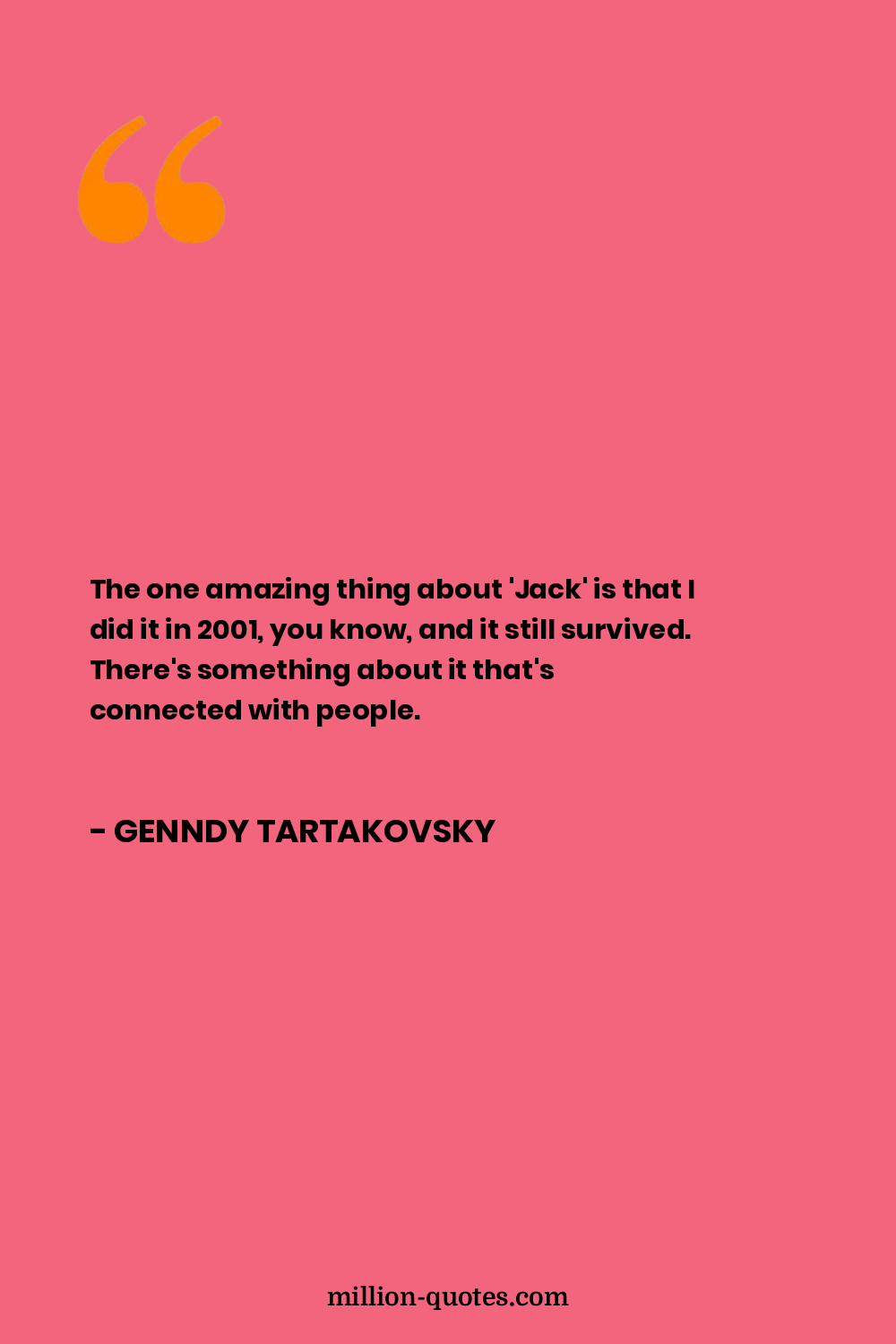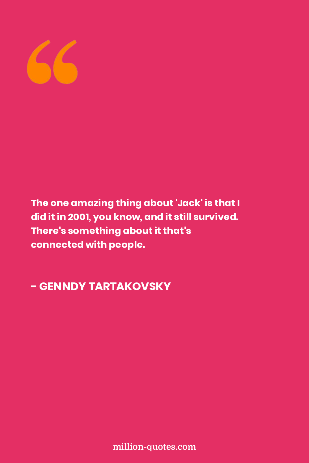 The one amazing thing about 'Jack' is that I did it in 2001, you know, and it still survived. There's something about it that's connected with people.