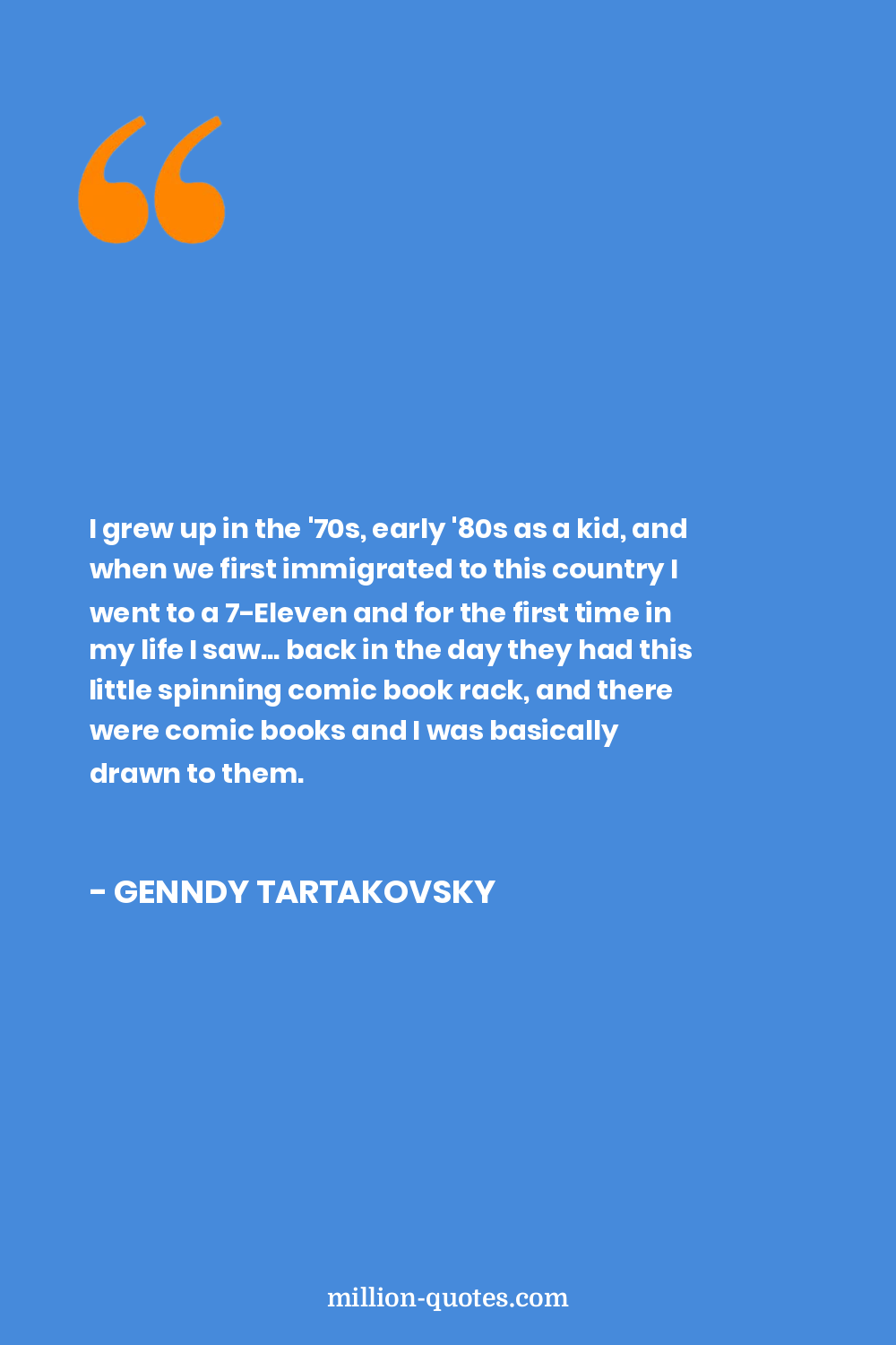 I grew up in the '70s, early '80s as a kid, and when we first immigrated to this country I went to a 7-Eleven and for the first time in my life I saw... back in the day they had this little spinning comic book rack, and there were comic books and I was basically drawn to them.