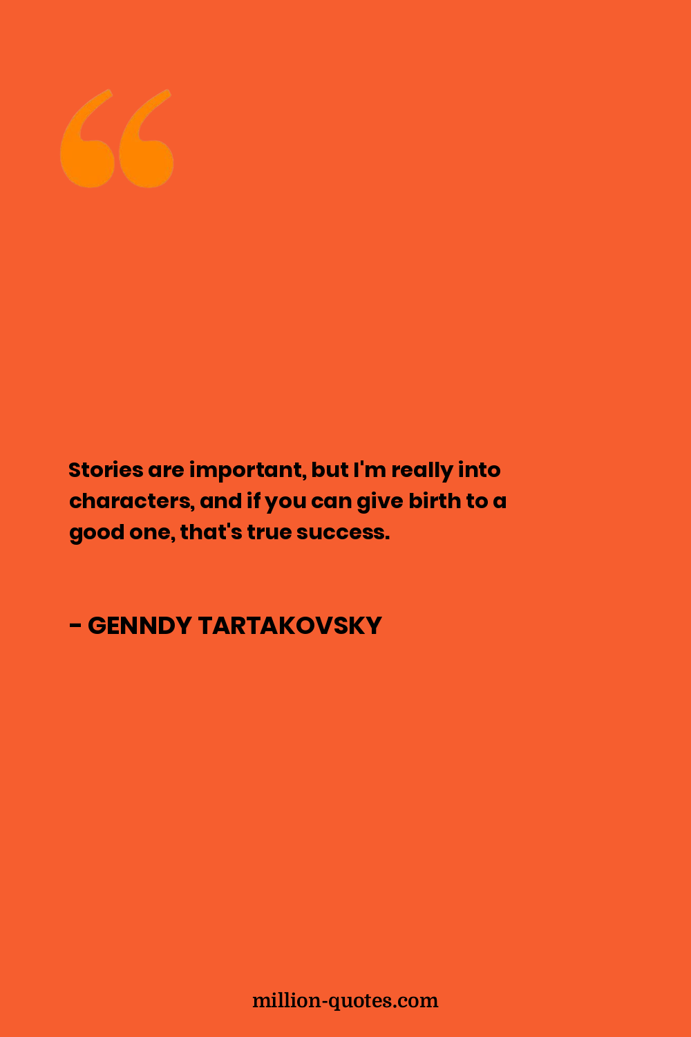 Stories are important, but I'm really into characters, and if you can give birth to a good one, that's true success.