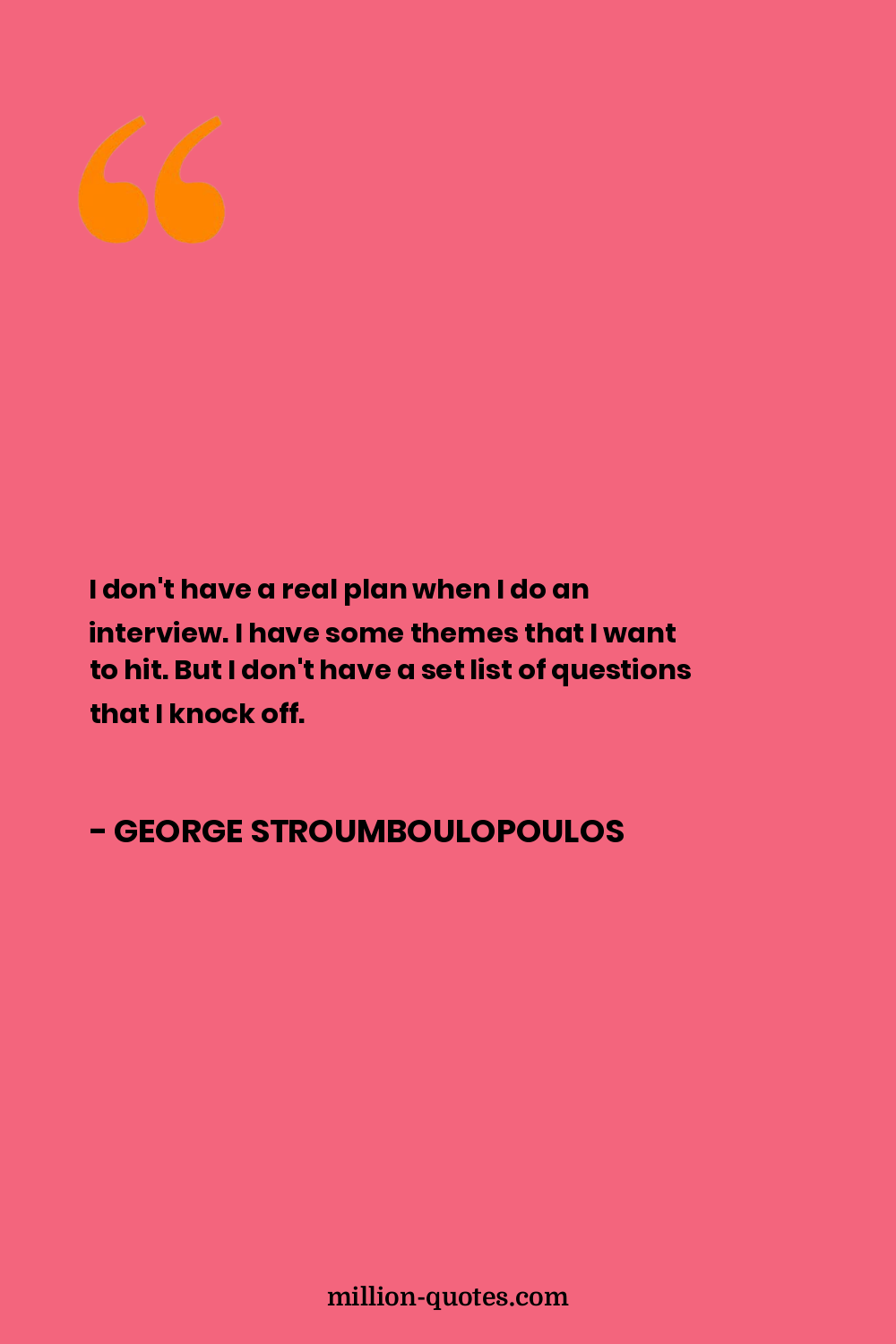 I don't have a real plan when I do an interview. I have some themes that I want to hit. But I don't have a set list of questions that I knock off.