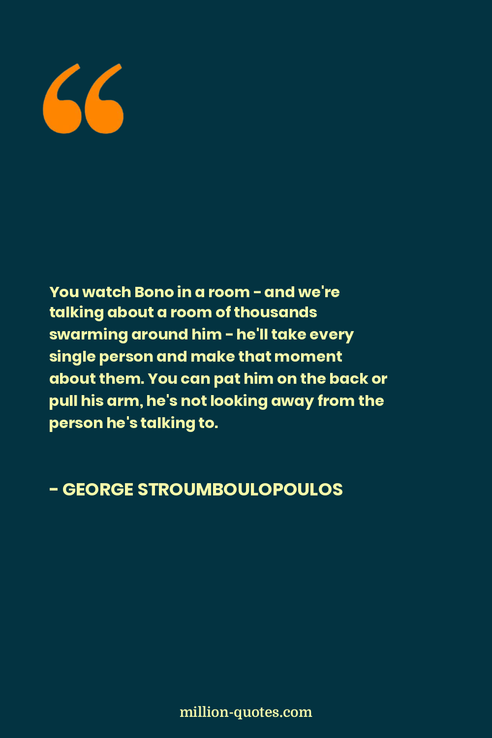 You watch Bono in a room - and we're talking about a room of thousands swarming around him - he'll take every single person and make that moment about them. You can pat him on the back or pull his arm, he's not looking away from the person he's talking to.