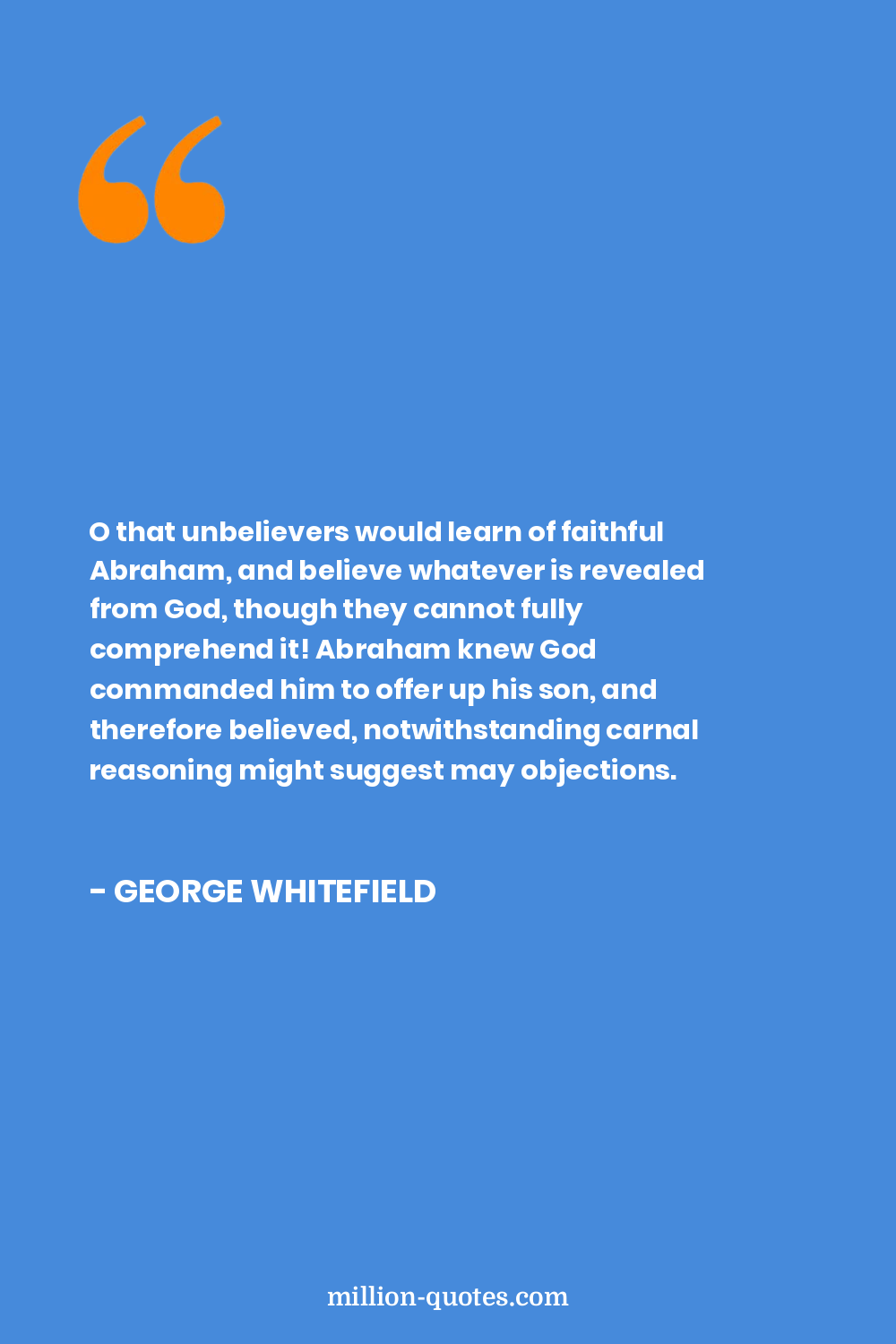 O that unbelievers would learn of faithful Abraham, and believe whatever is revealed from God, though they cannot fully comprehend it! Abraham knew God commanded him to offer up his son, and therefore believed, notwithstanding carnal reasoning might suggest may objections.