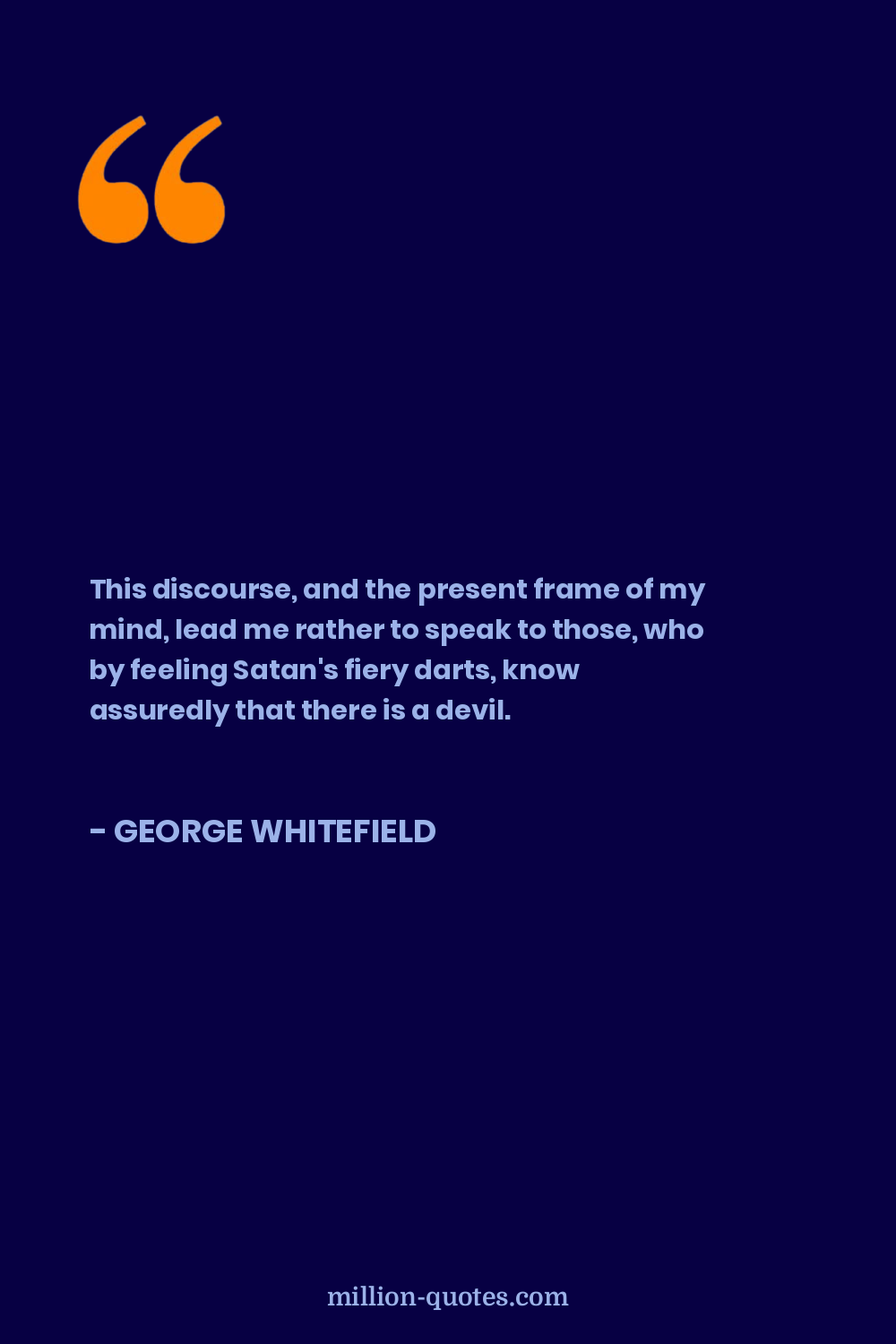 This discourse, and the present frame of my mind, lead me rather to speak to those, who by feeling Satan's fiery darts, know assuredly that there is a devil.