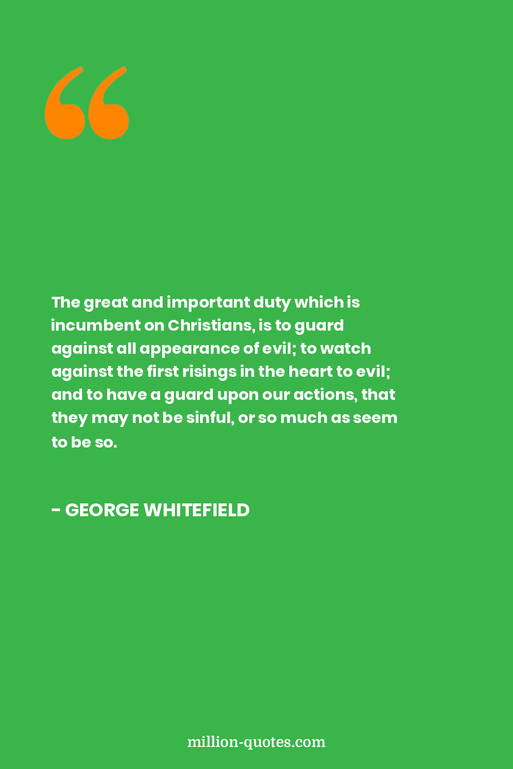 The great and important duty which is incumbent on Christians, is to guard against all appearance of evil; to watch against the first risings in the heart to evil; and to have a guard upon our actions, that they may not be sinful, or so much as seem to be so.