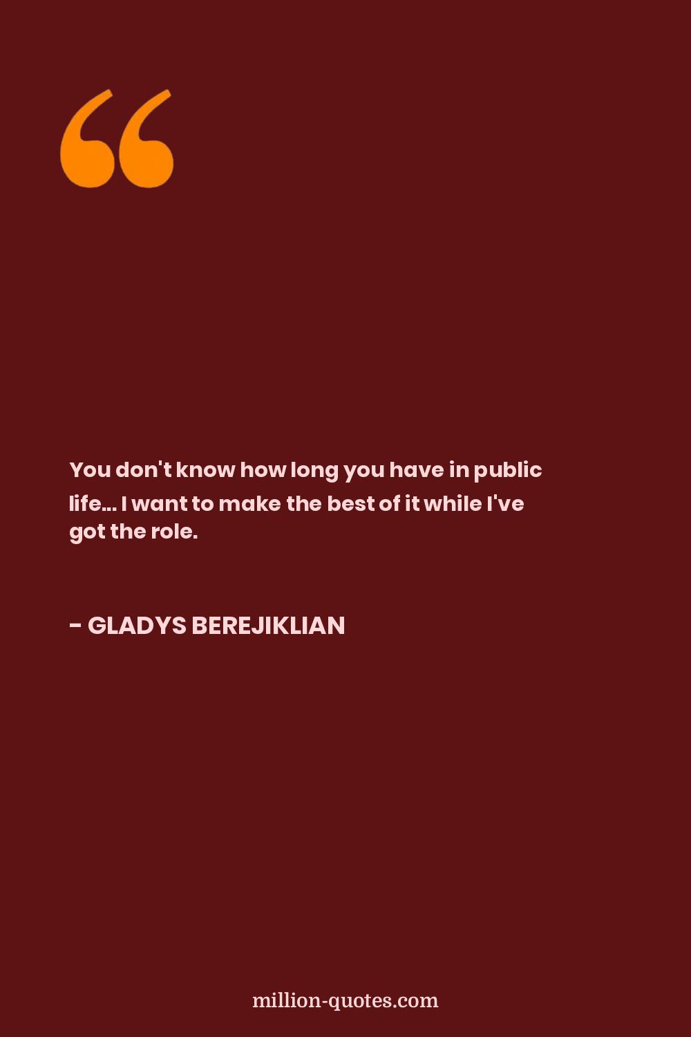 You don't know how long you have in public life... I want to make the best of it while I've got the role.