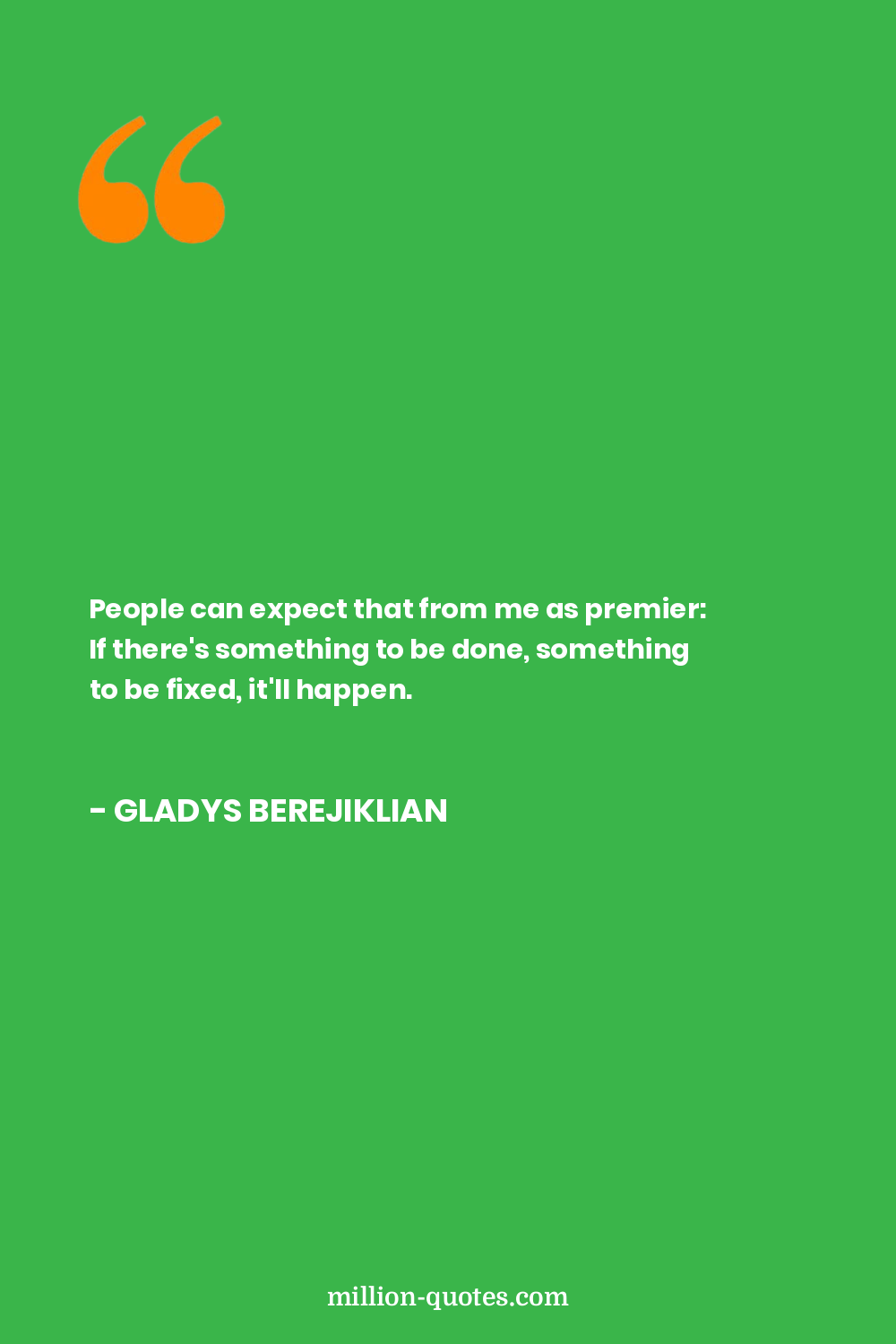 People can expect that from me as premier: If there's something to be done, something to be fixed, it'll happen.