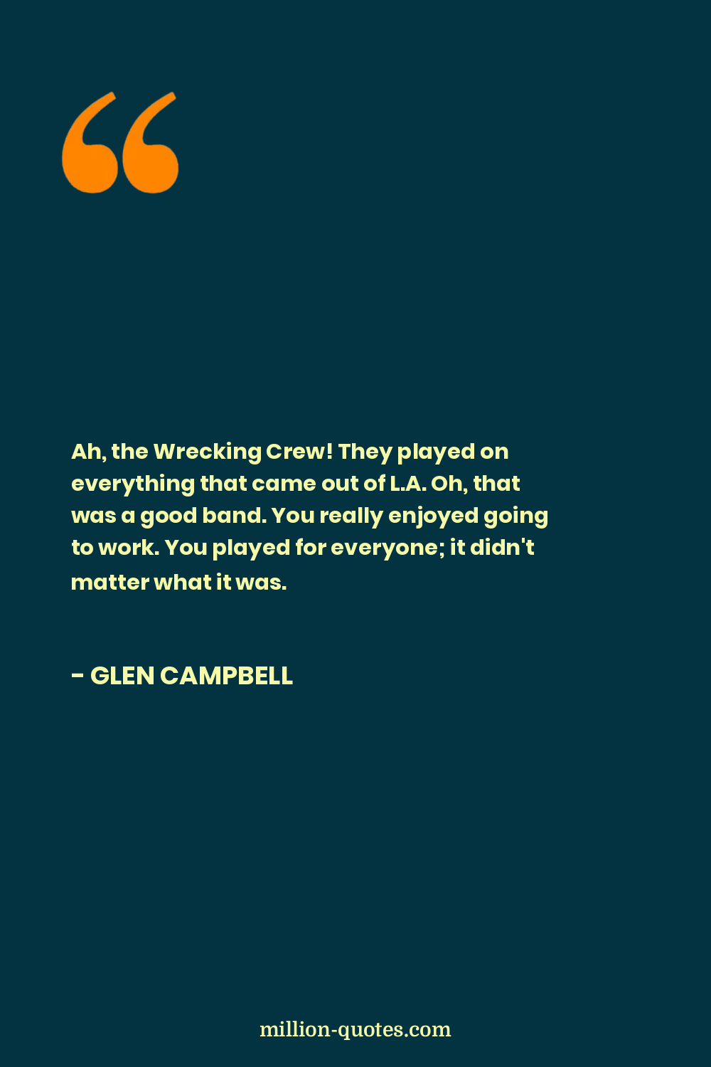 Ah, the Wrecking Crew! They played on everything that came out of L.A. Oh, that was a good band. You really enjoyed going to work. You played for everyone; it didn't matter what it was.