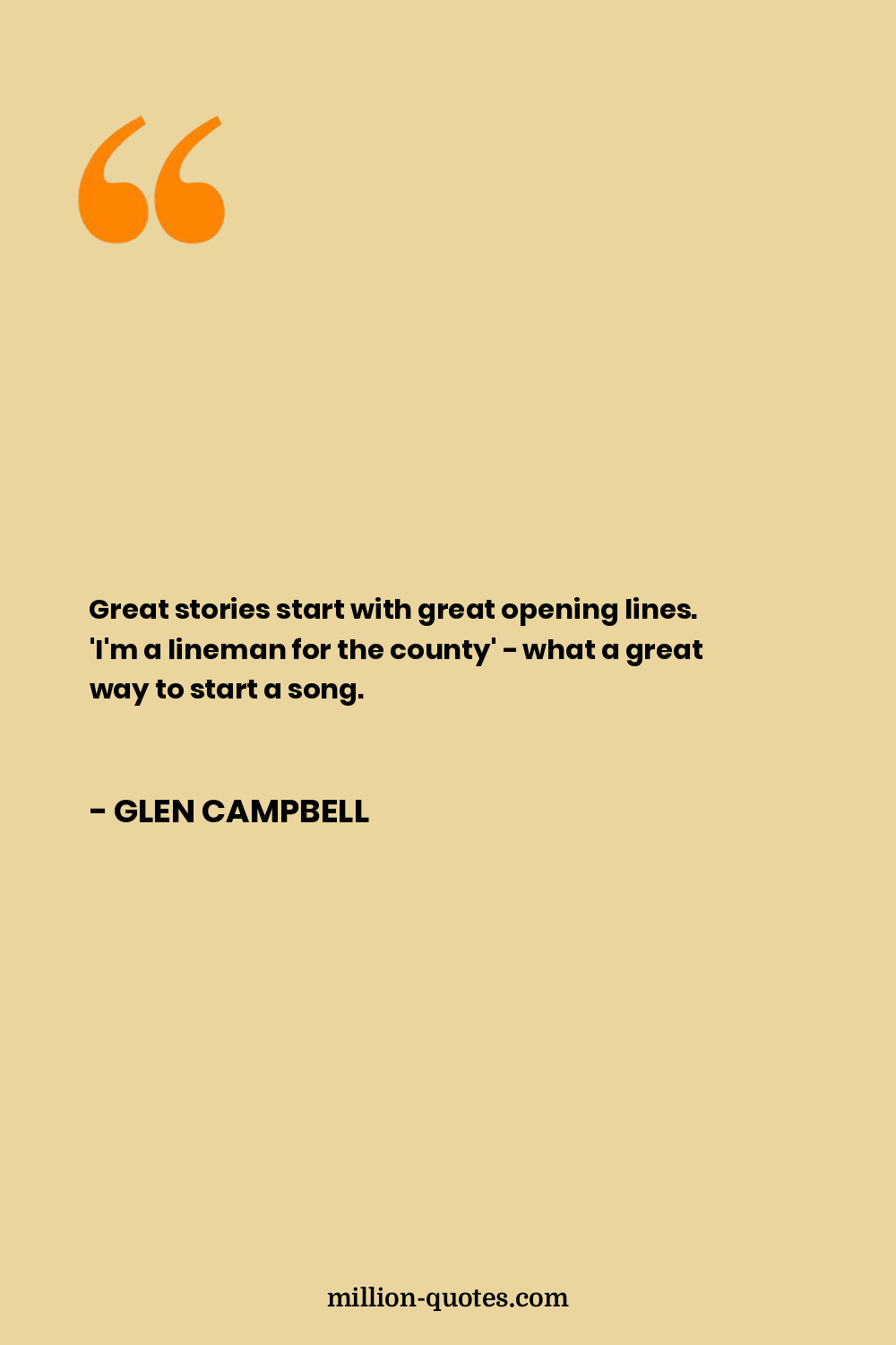 Great stories start with great opening lines. 'I'm a lineman for the county' - what a great way to start a song.