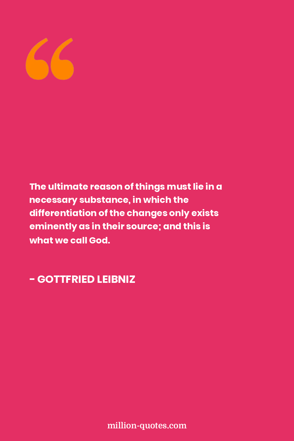 The ultimate reason of things must lie in a necessary substance, in which the differentiation of the changes only exists eminently as in their source; and this is what we call God.