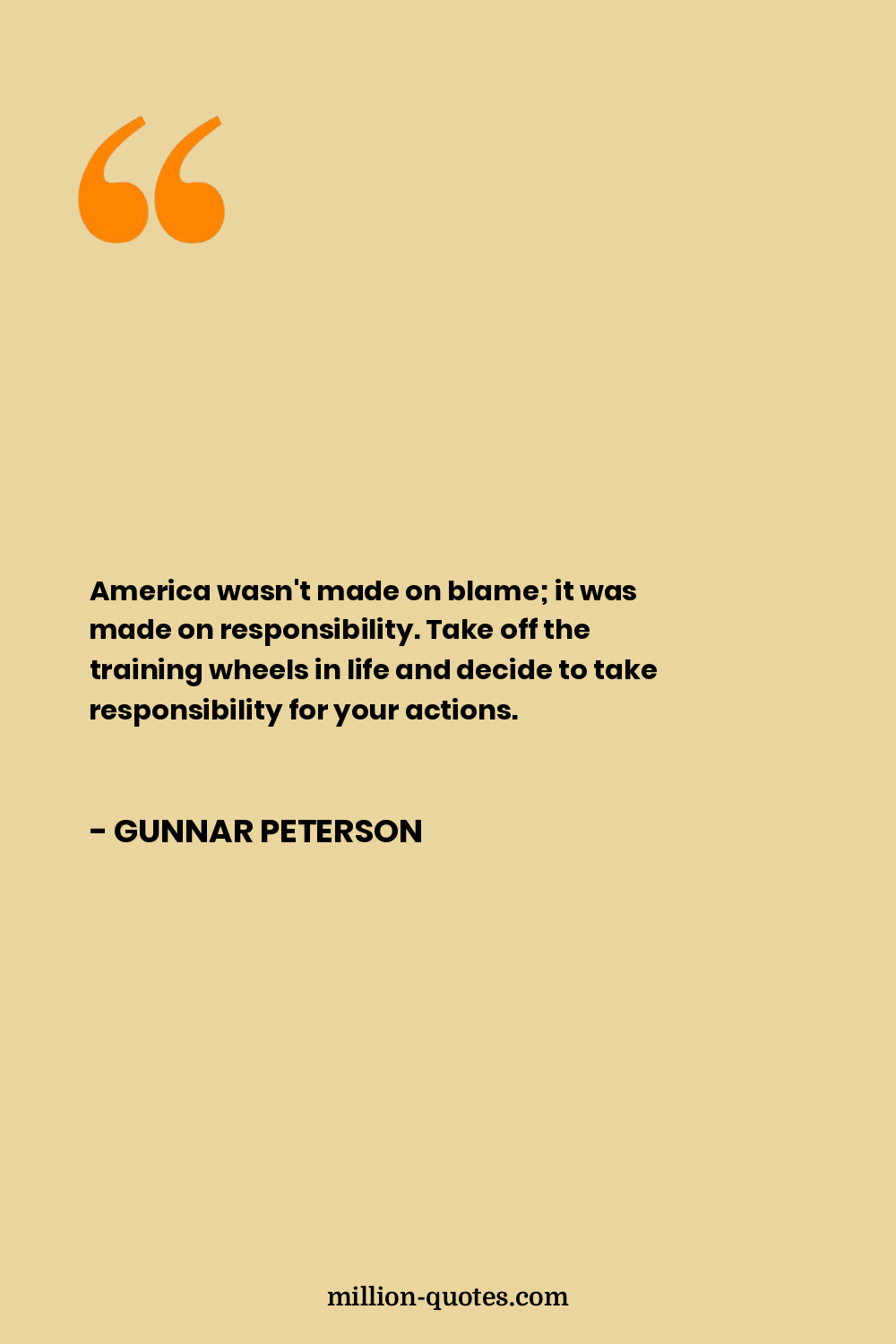 America wasn't made on blame; it was made on responsibility. Take off the training wheels in life and decide to take responsibility for your actions.