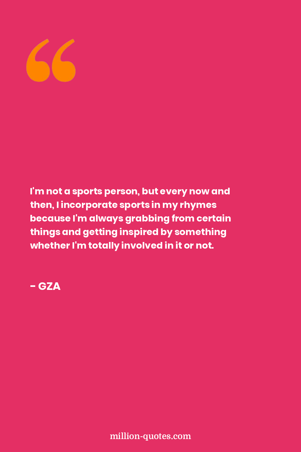 I'm not a sports person, but every now and then, I incorporate sports in my rhymes because I'm always grabbing from certain things and getting inspired by something whether I'm totally involved in it or not.