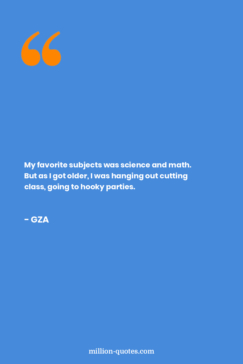 My favorite subjects was science and math. But as I got older, I was hanging out cutting class, going to hooky parties.